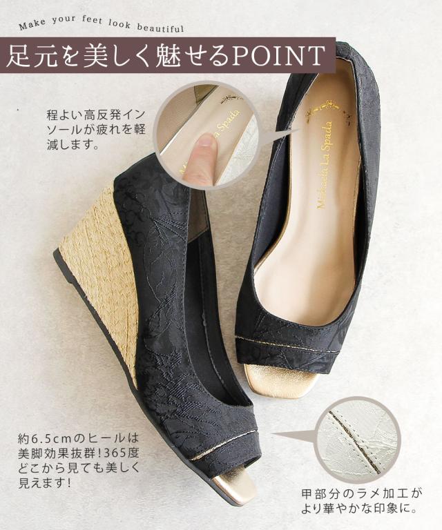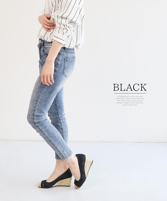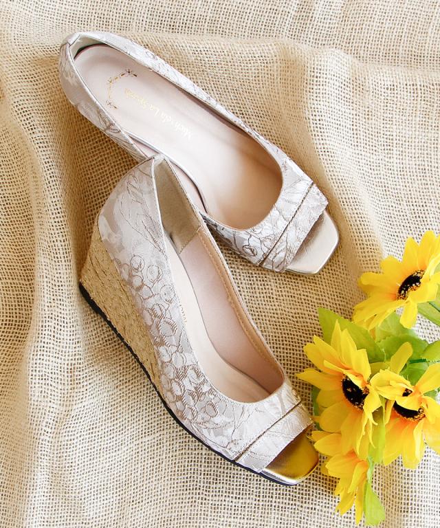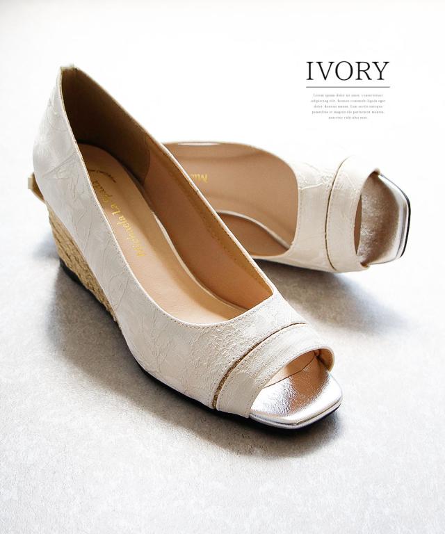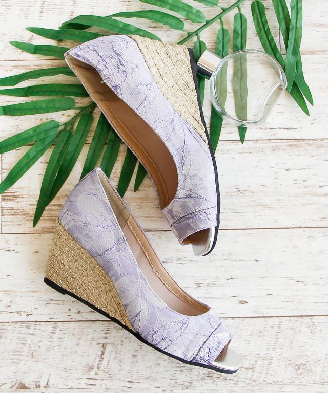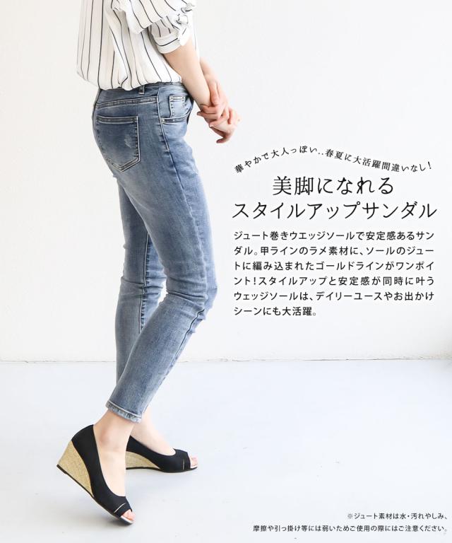 ジュートのウェッジソールが目をひくオープントゥサンダル