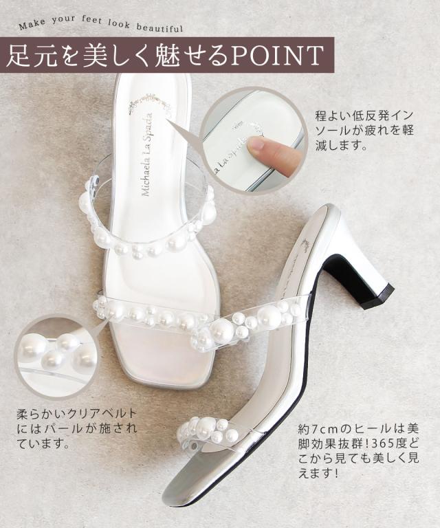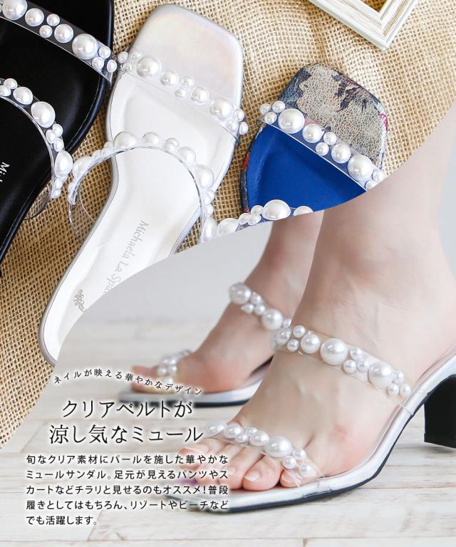 パール ベルト サンダル おしゃれ かわいい 華やか きれいめ レディース ミュール つっかけ 20代 30代 40代 2ベルト 7cmヒール 白 ベージュ フェミニン お洒落 可愛い ママ ヒール クリア クリアサンダル 高見え プチプラ トレンド 流行 流行り 夏 春 2311