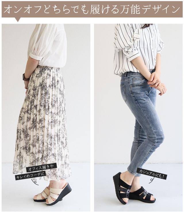 約6cmのウェッジで、スタイルアップ効果が期待でき安定感もあります。