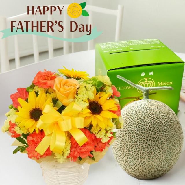 父の日 2025 アレンジメント と クラウンメロン の セット 生花アレンジメント 季節のお花 フラワーギフト 静岡県 めろん プレゼント 果物 誕生日 フルーツ お祝い 御祝 御礼 感謝 セット 盛り合わせ [アレンジ・メロン] 【BO】
