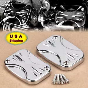 ハーレーツーリング FLHT / X 用クローム L&R サイドフロントブレーキマスターシリンダーカバー Chrome L&R Side Front Brake Master Cylinder Cover For Harley Touring FLHT / X