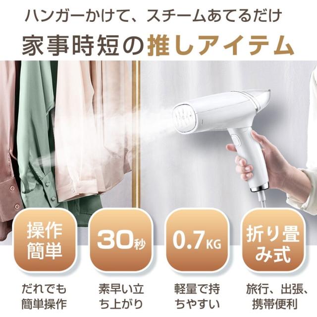ハンドルが折り畳めるので手軽に携帯でき、出張や旅行先でも衣類の手入れができます。