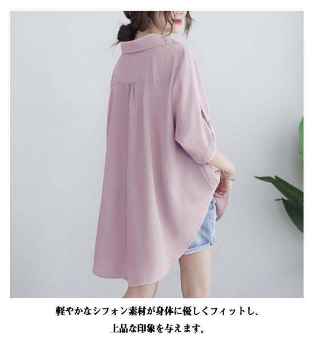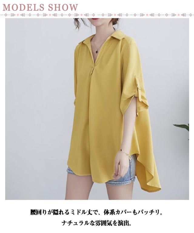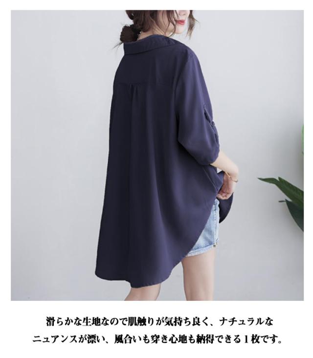 | ゆったりとしたフォルムで着心地の良いチュニックシャツです。 腰回りが隠れるミドル丈で、体系カバーもバッチリ。ナチュラルな雰囲気を演出。 シンプルで女性らしい抜け感のある雰囲気が人気のチュニックです。 春の涼しい日差しから秋の過ごしやすい気候まで、 ゆったりとしたロングデザインで、スタイルを引き立てながらも動きやすさを追求。 軽やかなシフォン素材が身体に優しくフィットし、上品な印象を与えます。 上質なシフォン生地を使用しており、透け感のある繊細な風合いが女性らしさを演出。通気性に優れているため、春夏の季節にも快適にお召し頂けます。 滑らかな生地なので肌触りが気持ち良く、ナチュラルなニュアンスが漂い、風合いも穿き心地も納得できる1枚です。 コーディネートが1枚で決まるのでディリー使いにピッタリです。前ボタンを上まで止めてきれいめに、 | |