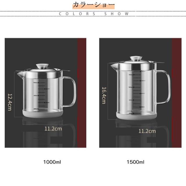ガラスオイルポット 調味サーバー 油差し 耐熱ガラス 液だれしにくい オイルポット 1L 醤油差し 調味料ボトル オイル差し 蓋付き 1.5L ヴィネガーボトル 小サイズ ドレッシングボトル ドレッシング入れ 大容量 フィルター 卓上 丸洗い 油 保存容器