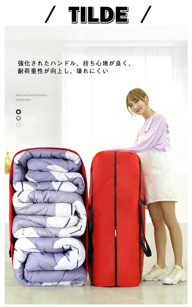 | 厚手のオックスフォード素材で防湿・防カビ性に優れ、衣類の保管をより安全にします。 強化されたハンドル、持ち心地が良く、耐荷重性が向上し、壊れにくい 高品質のファスナー、スムーズな開閉、丈夫で耐久性があります 防水性、防湿性、耐傷性、耐摩耗性 二重配線補強、引き裂き防止、強力な耐荷重 | |