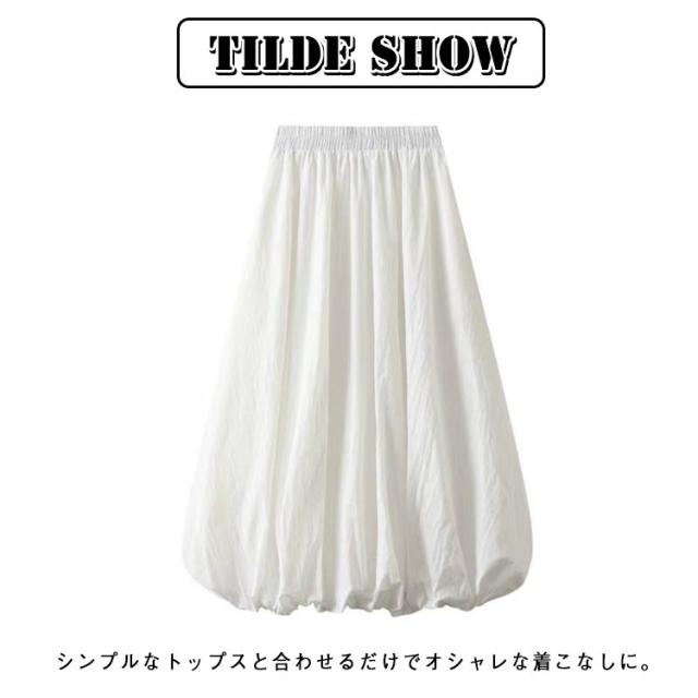 ロングスカート 春夏 スカート ロング丈スカート スカート マキシ丈 バルーンスカート コクーンスカート バルーンスカート バルーン マキシスカート Aライン 体型カバー 大人 レディース ハイウェスト ふんわり 薄手 可愛い 着痩せ 通勤 無地 ギャザー入り