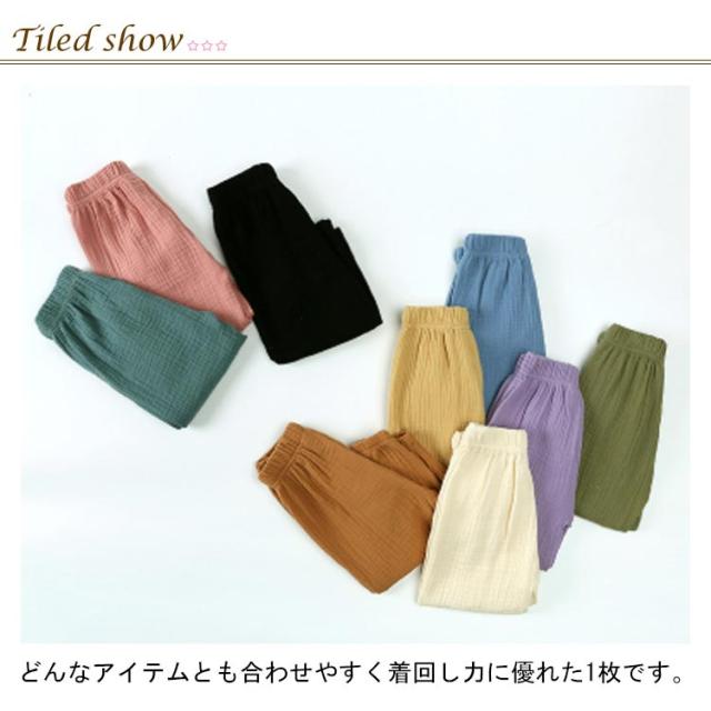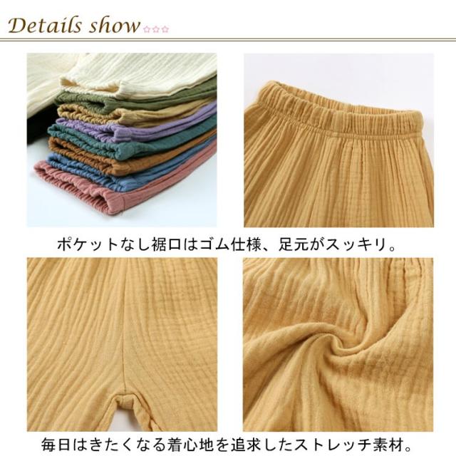 | 90〜140cm 涼しい ひんやり 綿麻風パンツ ポケットなし裾口はゴム仕様、足元がスッキリ。 どんなアイテムとも合わせやすく着回し力に優れた1枚です。 毎日はきたくなる着心地を追求したストレッチ素材。 ズボンと違い、紫外線や蚊や怪我からも保護されます。 | |