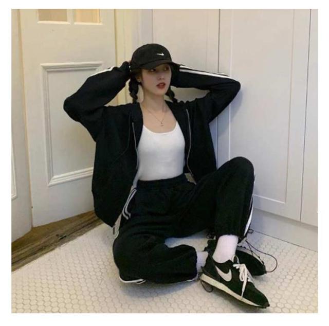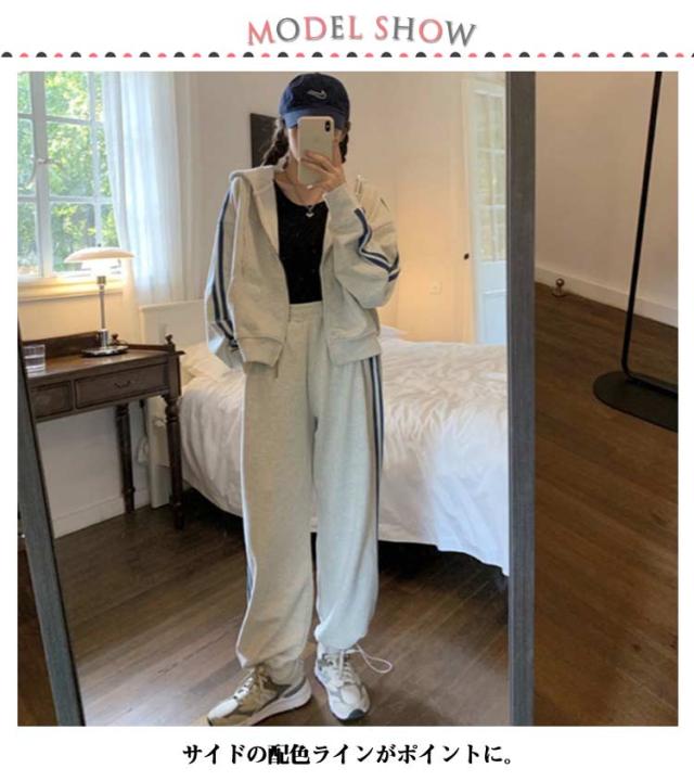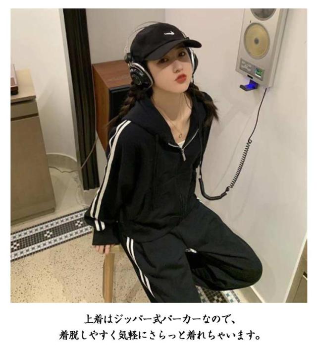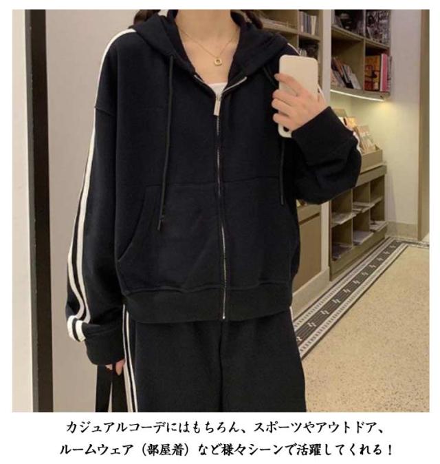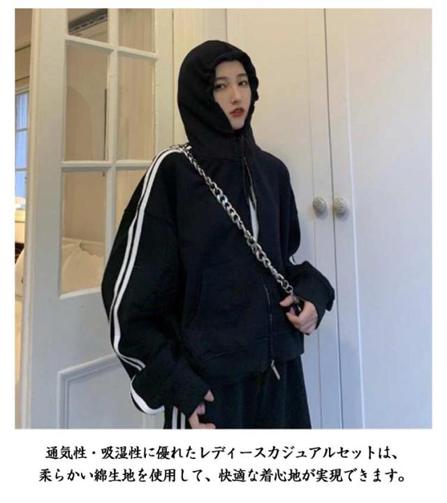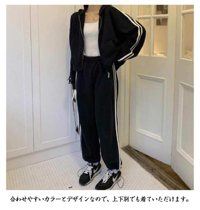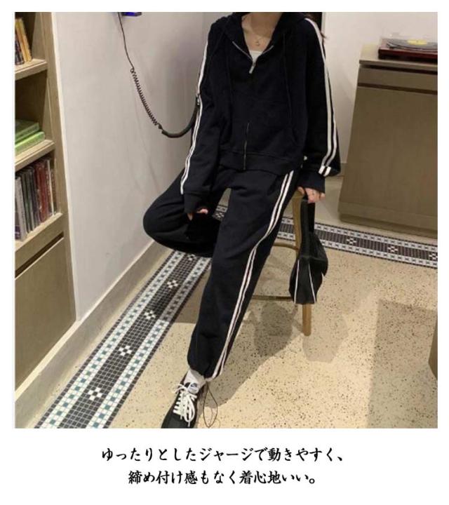 上下セット ランニング スウェットパンツ ジャージ 長袖 春 2点セット ジャージ 秋 ジップアップ パーカー 運動着 サイドライン 2本ライン レディース トレーニングウェア スウェット 部屋着 アウトドア 着痩せ 韓国ファッション カジュアル