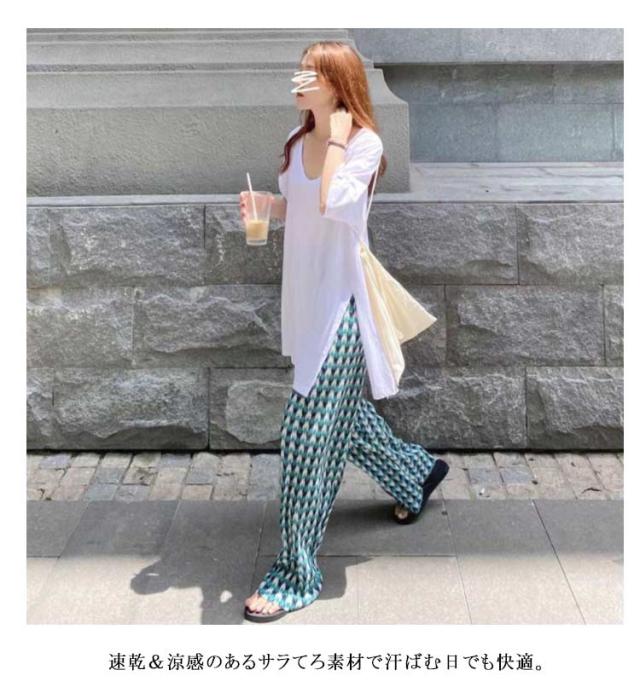 | S-3XL!おしゃれデザインのレディースワイドパンツ 速乾&涼感のあるサラてろ素材で汗ばむ日でも快適。 伸縮性抜群のウエストゴムでお腹周りも楽ちん。 広がり過ぎないストレートシルエットが大人な雰囲気を演出してくれるので、ラフすぎないスタイリングにも! | |