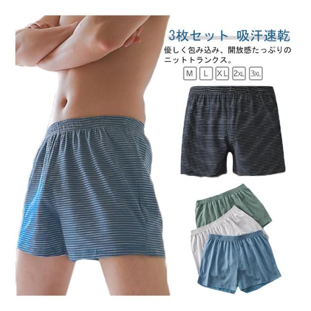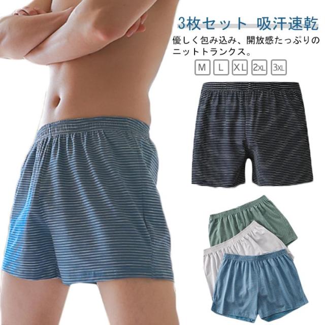 パンツ コットン 3枚セット ニットトランクス 綿 メンズ ボーダー 下着 トランクス 吸汗速乾 蒸れない インナー 肌着 下着 男性 パンツ 大きいサイズ リラックス インナー
