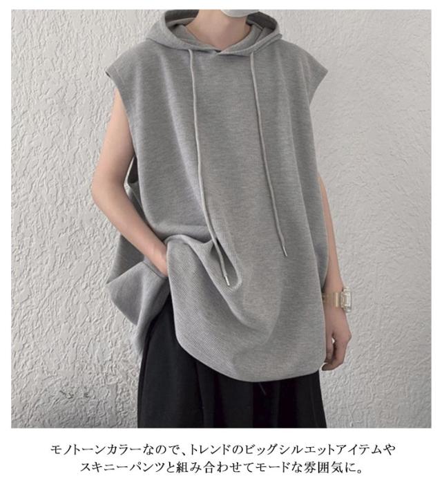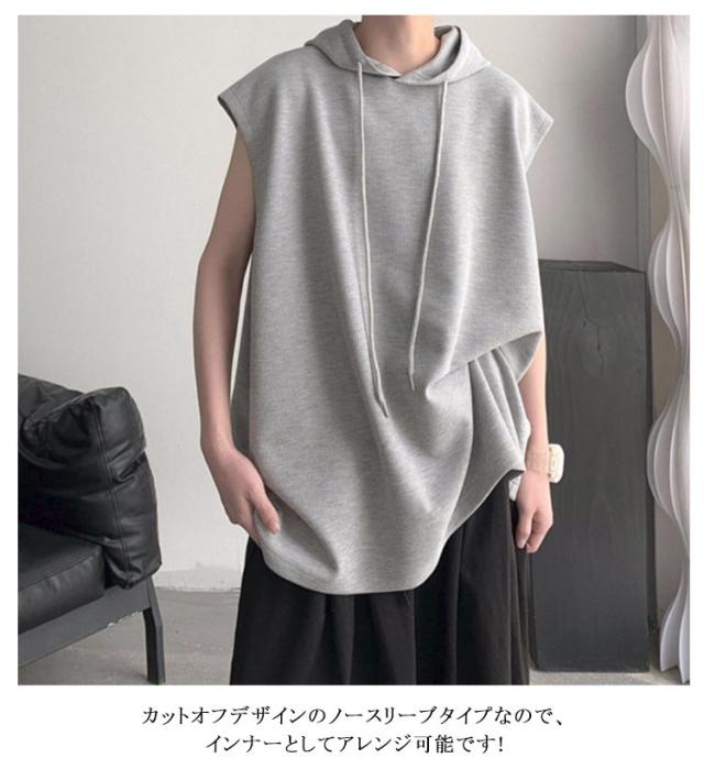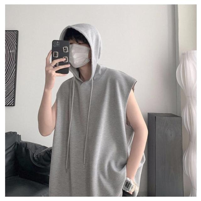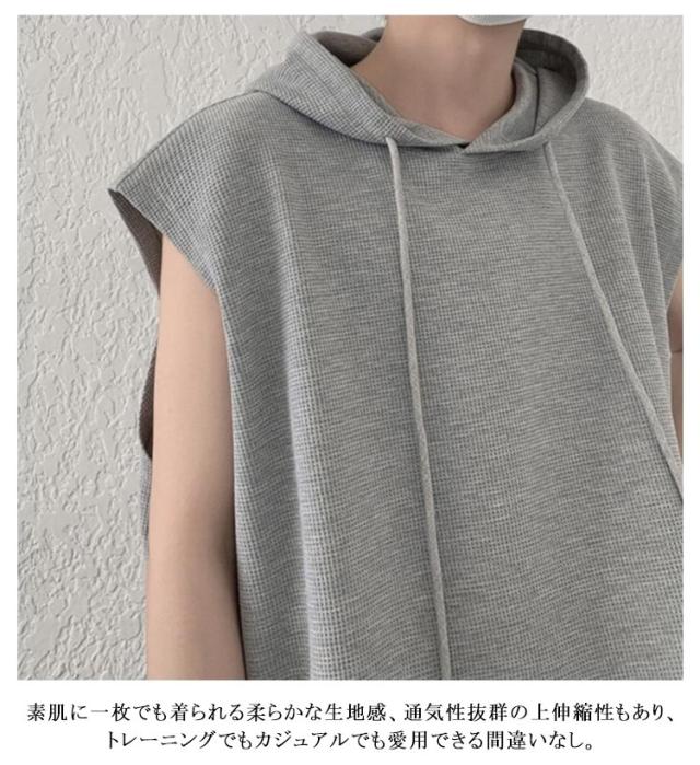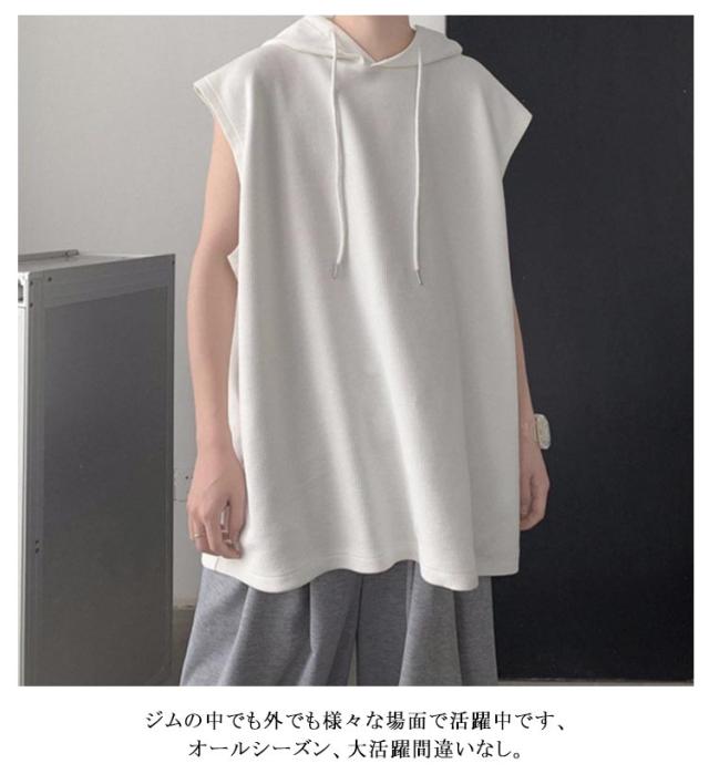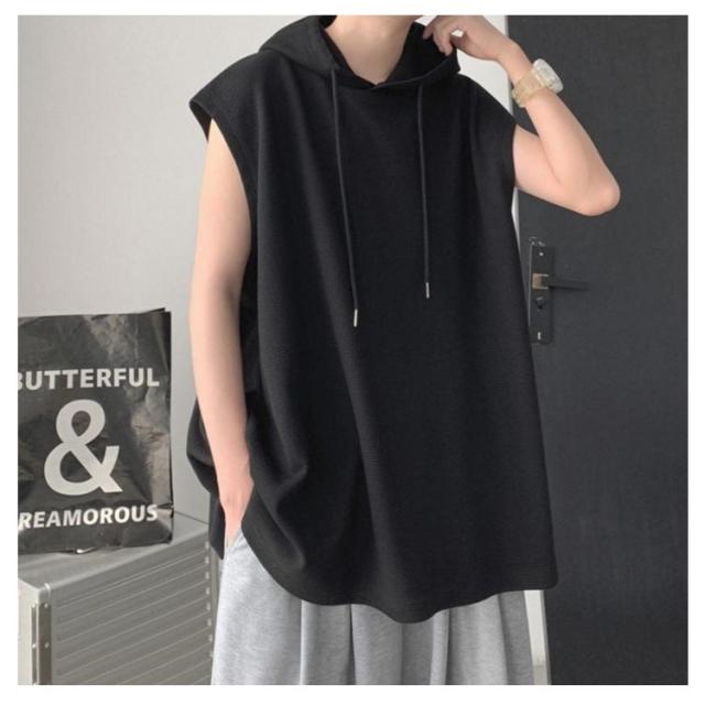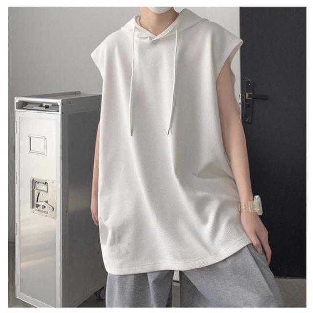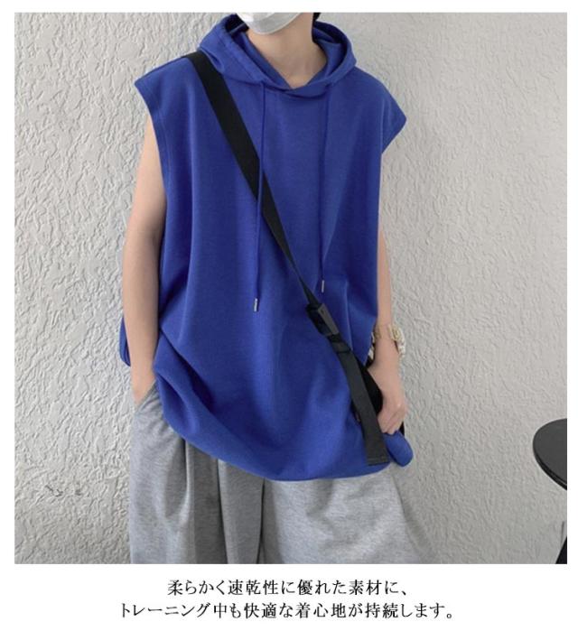 タンクトップ 袖なし Tシャツ ベスト ゆったり フード付き トップス 薄手 ジレ 夏ベスト メンズ 薄手 フード付きタンクトップ 夏 重ね着 袖なし 無地 プルオーバーベスト パーカーベスト 個性的 カジュアル スポーツウエア
