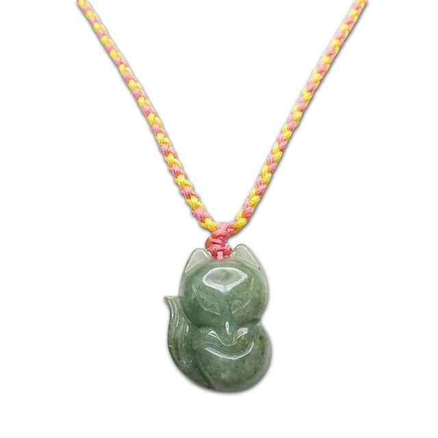 色合い良好ひすい本翡翠きつね天然石彩色手編み紐ネックレス