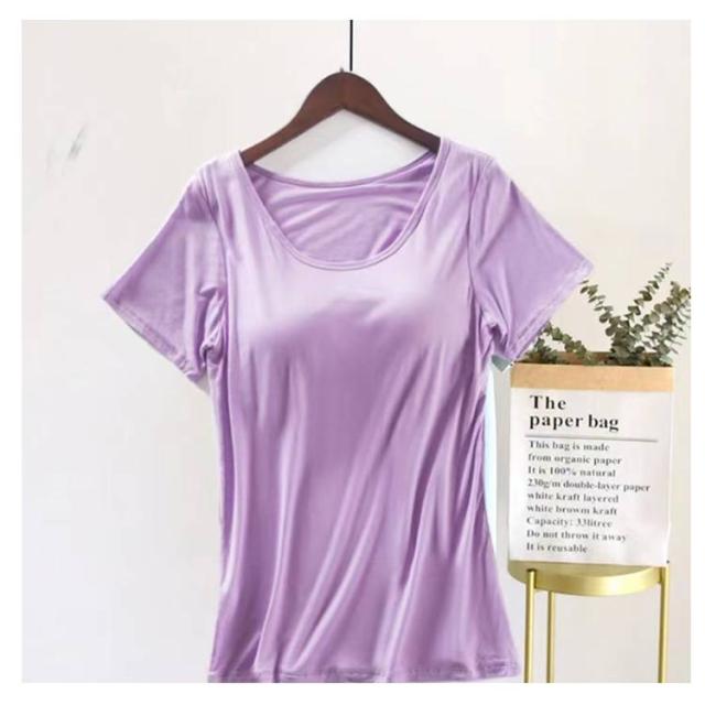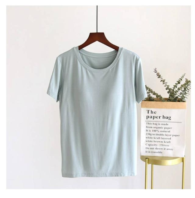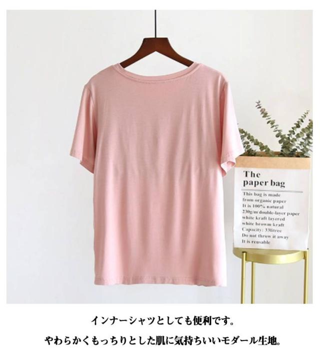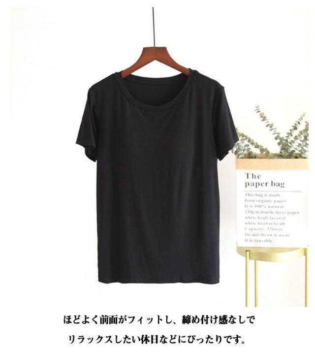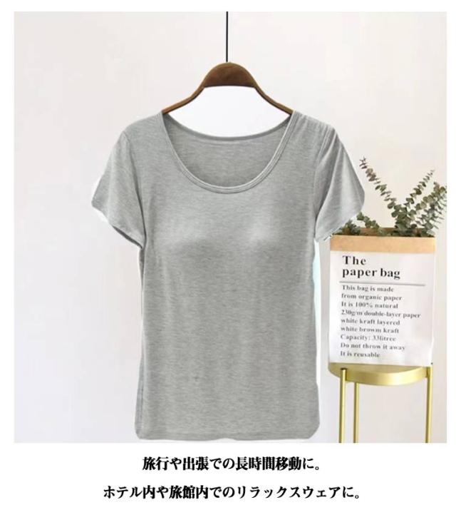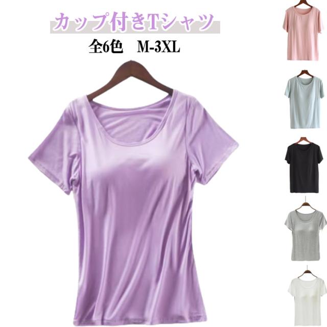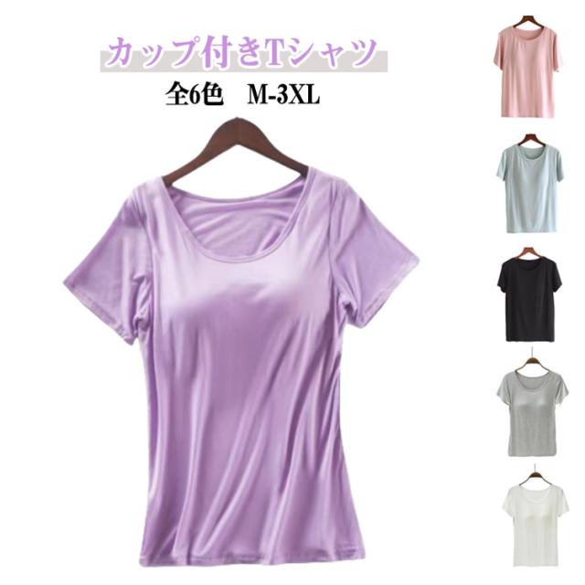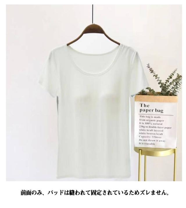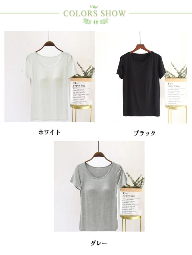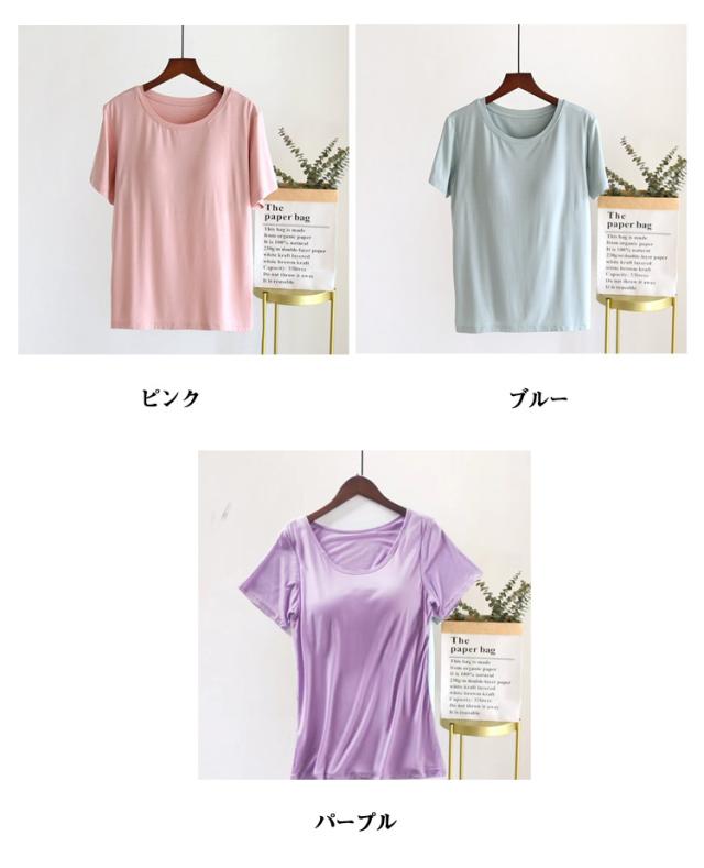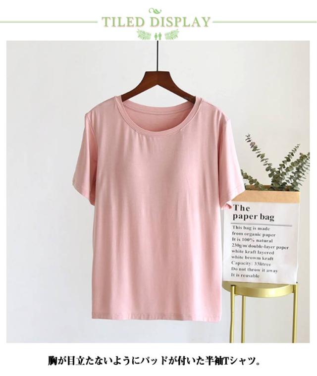 カットソー カップ付き 無地 ラウンドネック アンダーフリー ゴムなし 柔らか パット付半袖Tシャツ 半袖 Tシャツ Tシャツ トップス ルームウェア ブラトップ レディース 締め付けない インナー 部屋着 おしゃれ 夏服