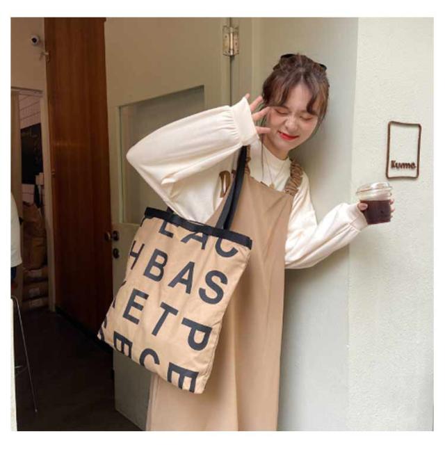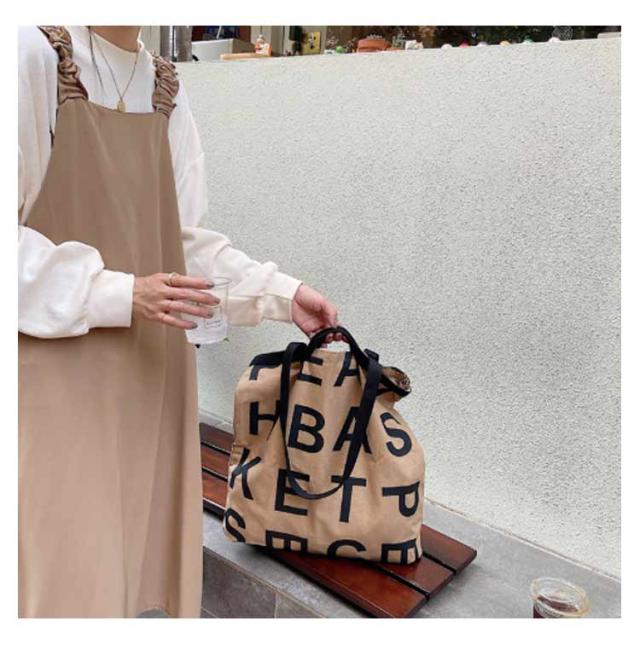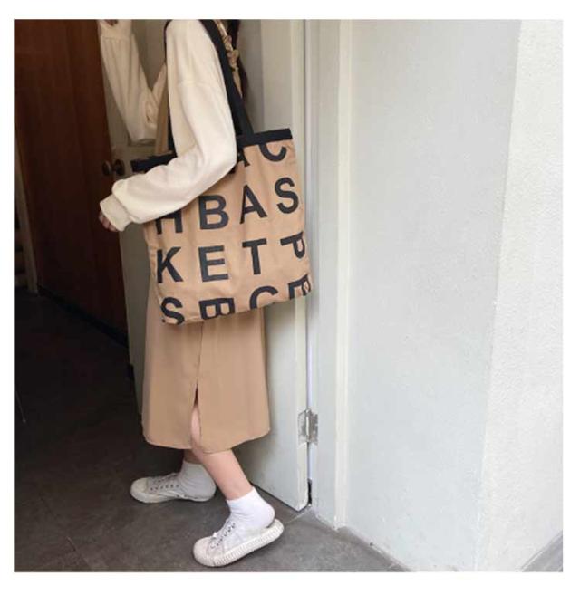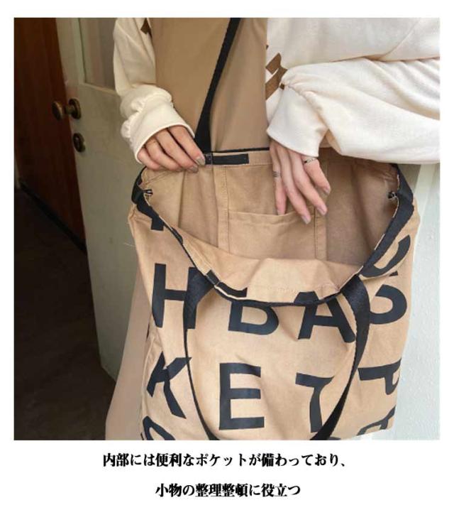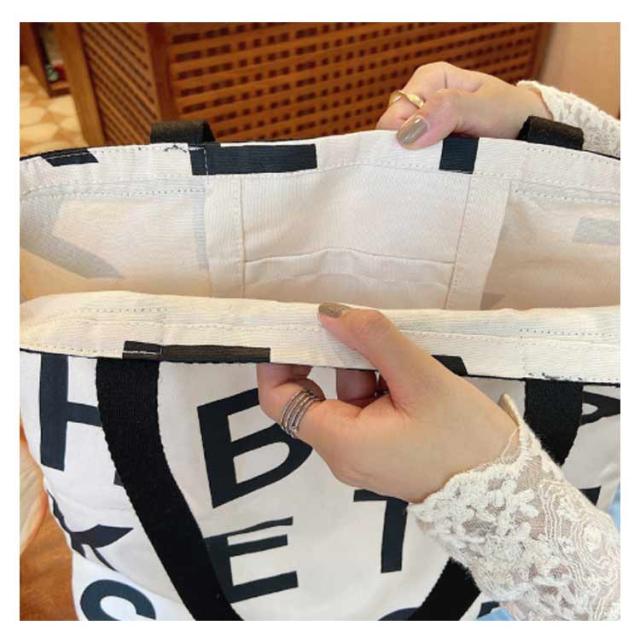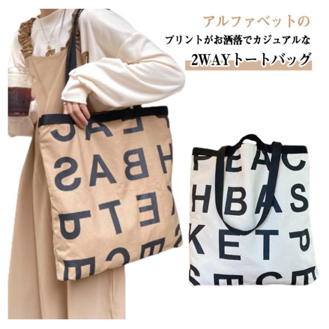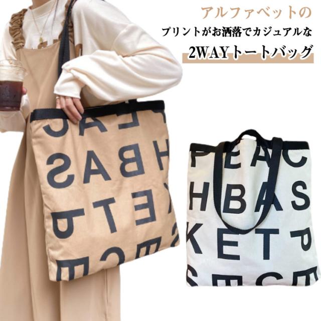 アルファベット レディース 通学 バッグ プリント トート お洒落 通学 肩掛け 大容量 A4 トートバッグ 2WAY バッグ 手持ち キャンバスバッグ 大きめ カジュアル スクエア たっぷり おしゃれ かわいい トレンド シンプル バッグ ブラック ホワイト 通勤