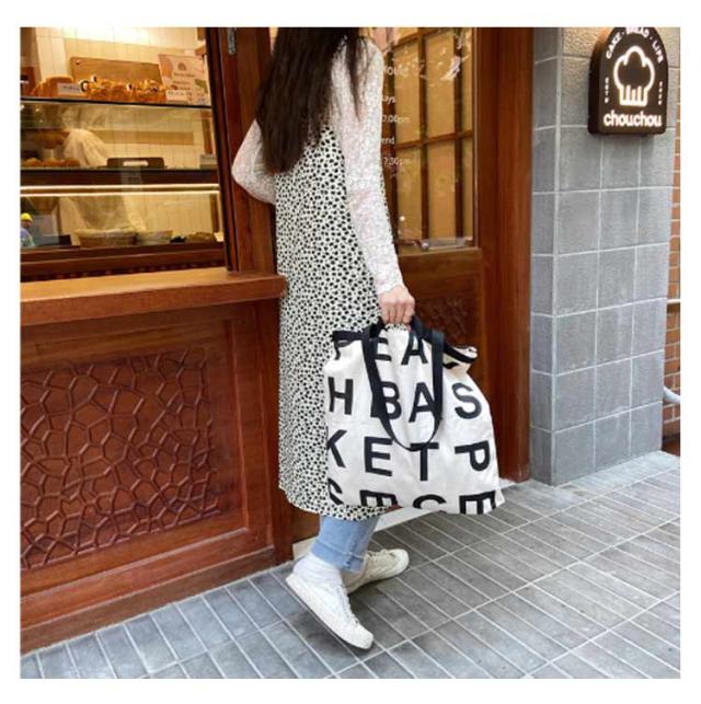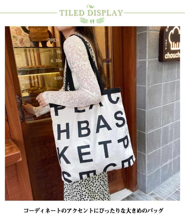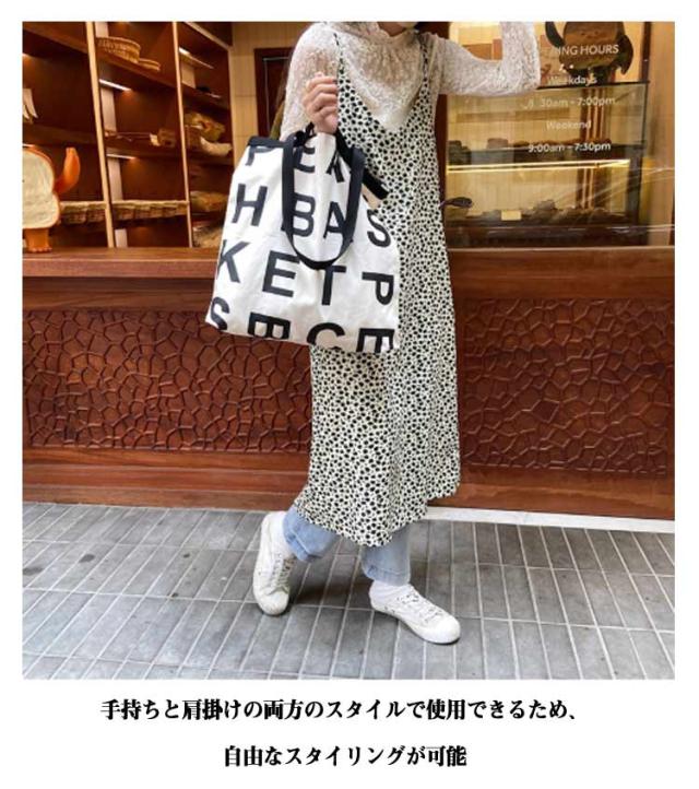 | アルファベットのプリントがお洒落でカジュアルな2WAYトートバッグ コーディネートのアクセントにぴったりな大きめのバッグ 手持ちと肩掛けの両方のスタイルで使用できるため、自由なスタイリングが可能 スクエア型のデザインで、たっぷりの荷物を収納できる大容量が魅力 内部には便利なポケットが備わっており、小物の整理整頓に役立つ コンパクトに折りたたんで携帯できるから、エコバッグやサブバックとしても最適! | |