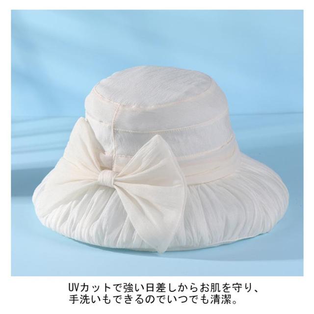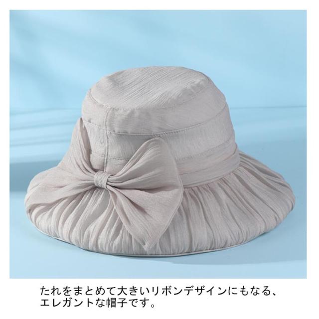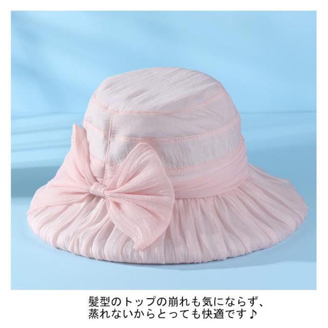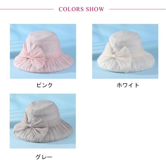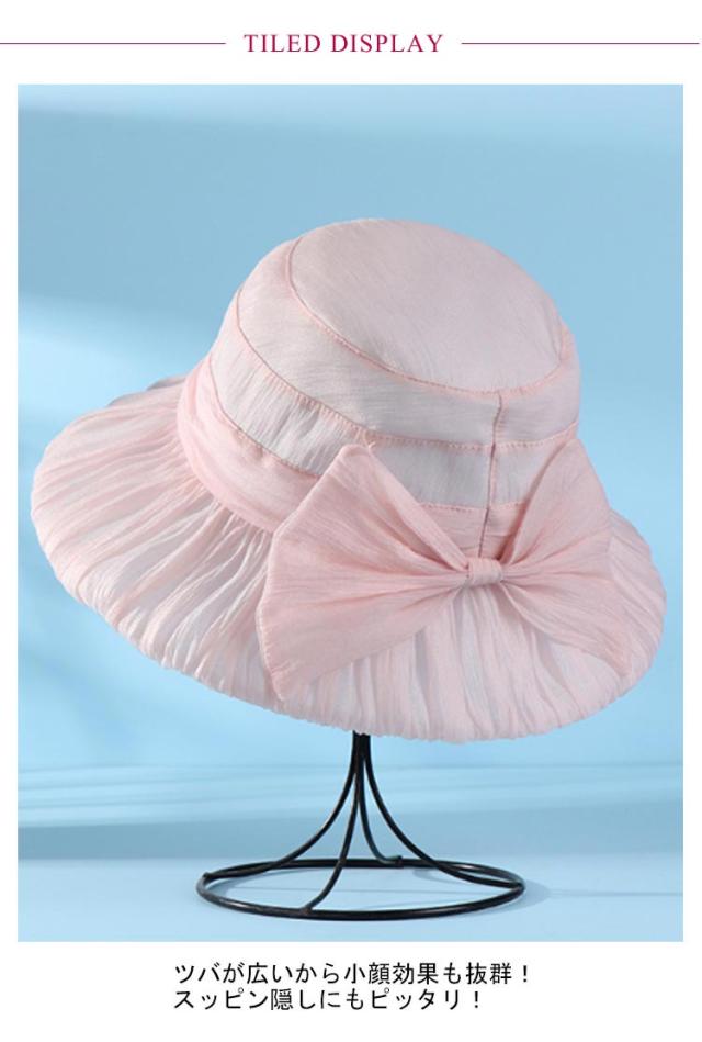 深め ハット 帽子 遮熱 夏 折りたたみ リボン帽子 つば広 りぼん付き ハット リボン帽子 涼しい 日よけ 大きいサイズ UVカット 折り畳み 日よけ UV ギャザー入り 小顔効果 リボンハット 日除け帽子 ピンク ホワイト