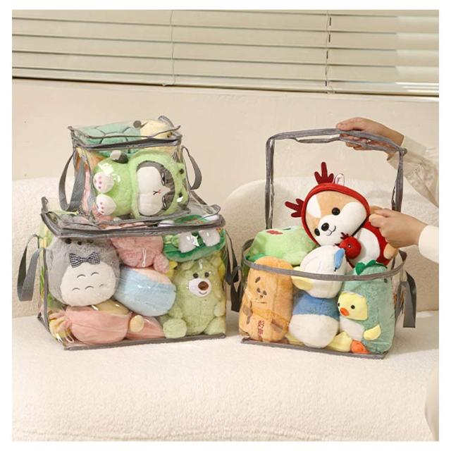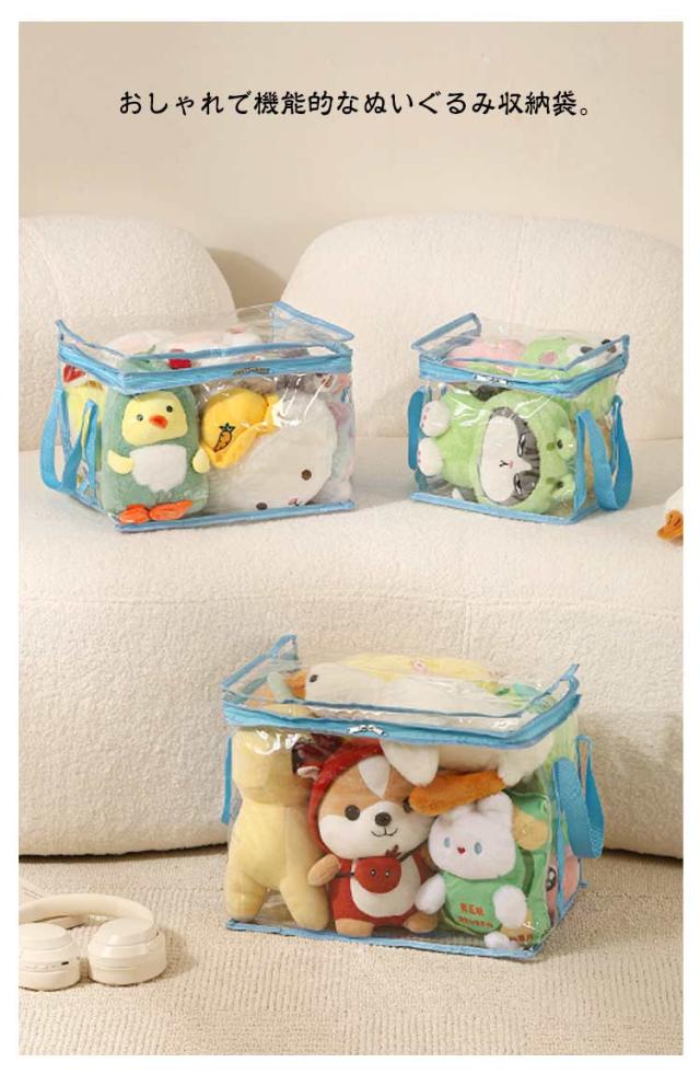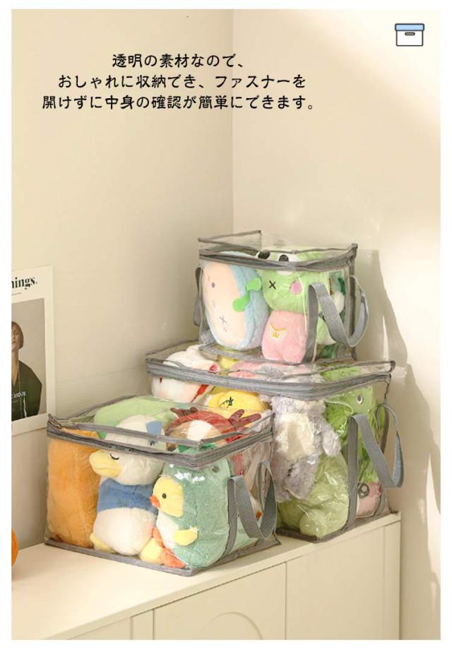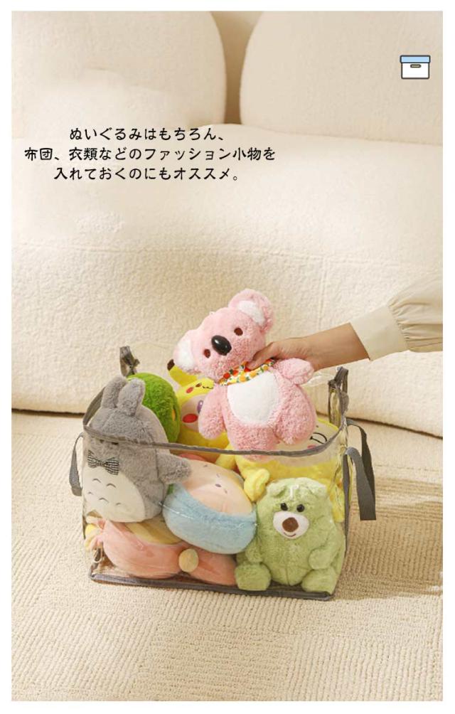| 【ぬいぐるみ収納袋】【3サイズ】【取っ手付き】 おしゃれで機能的なぬいぐるみ収納袋。 透明の素材なので、おしゃれに収納でき、ファスナーを開けずに中身の確認が簡単にできます。 取っ手付きで、取り出しやすく、持ち運びしやすいです。 置き場所に困ったぬいぐるみの収納に最適です。 ぬいぐるみはもちろん、布団、衣類などのファッション小物を入れておくのにもオススメ。 | |