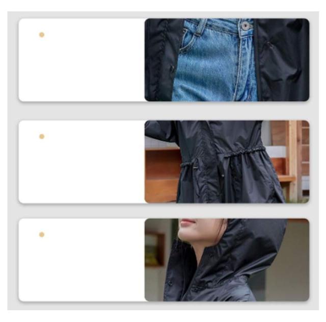 | ・雨の日でもスタイリッシュにお出かけ ・軽量な素材を使用しており、快適な着用感。長時間の着用でも負担を感じにくく、動きやすいのが特徴。 ・シルエットの変化が楽しめるウエストコード付き。 | |