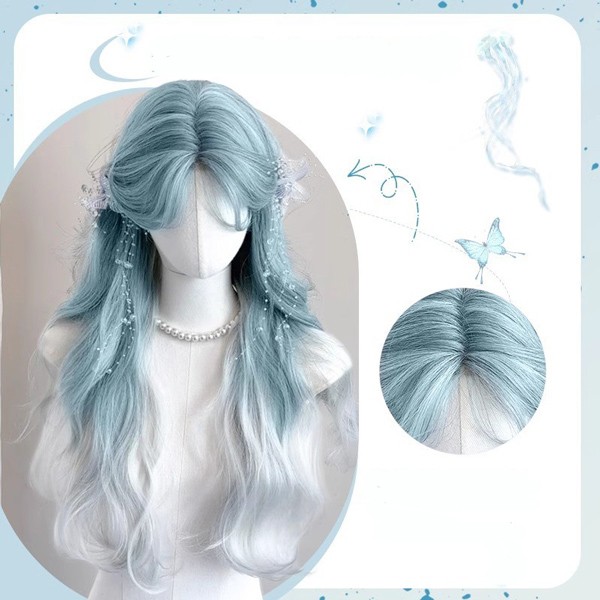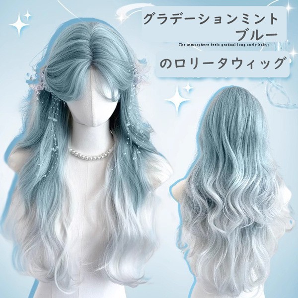 ウィッグレディース グラデーションミントブルー ウィッグ長髪 かつらロング可愛い かわいい 大人用 コスプレ ロリータ ゴスロリ原宿風 仮装 超自然 かつら小顔 文化祭 イベント 学園祭 ハロウィン dq013zuzuzu