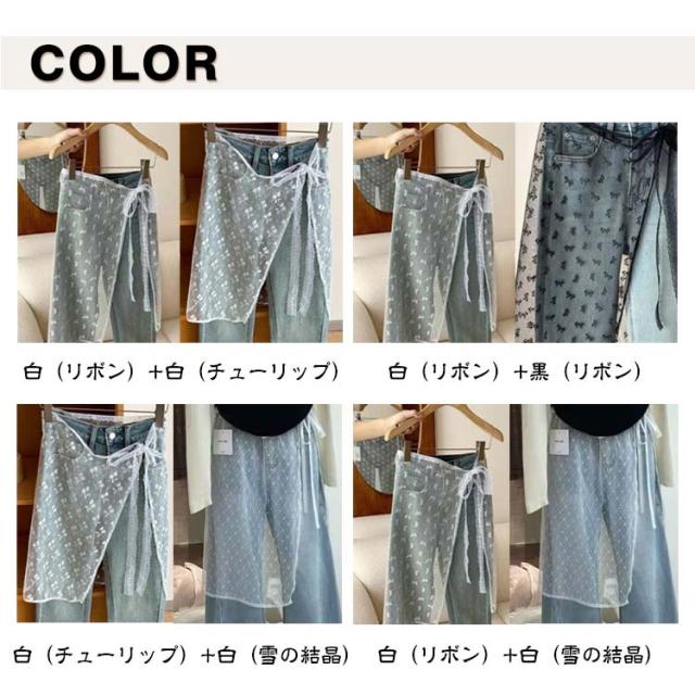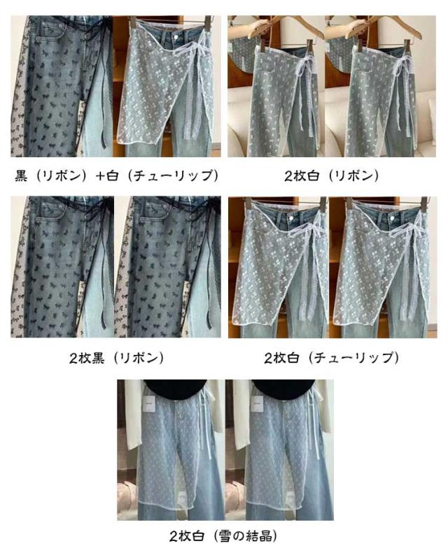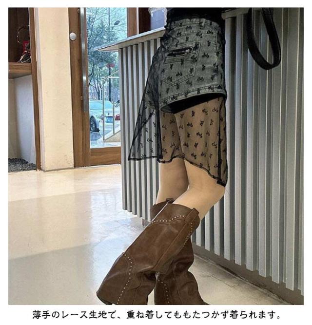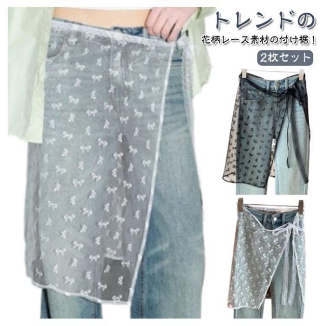 レース レイヤード 2枚セット シースルー 重ね着風 付け裾 つけ裾 スカート ラップスカート チュール ペチコート 膝丈 巻きスカート ズボンの上 きれいめ 体型カバー 重ね着 レディース 花柄 2枚セット 刺繍 透け感 シアー レース バレエコア 韓国風 y2k 春 夏 秋