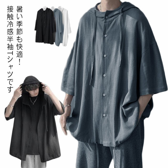 パーカー フード付き ひんやり メンズ 韓国風 涼しい 冷感 おしゃれ 速乾 半袖パーカー おしゃれ 夏 夏パーカー スポーツ 五分袖 サマーパーカー フード付きTシャツ プルオーバーパーカー ルームウェア メンズファッション ダンス 半袖パーカー 春 夏 夏服 父の日
