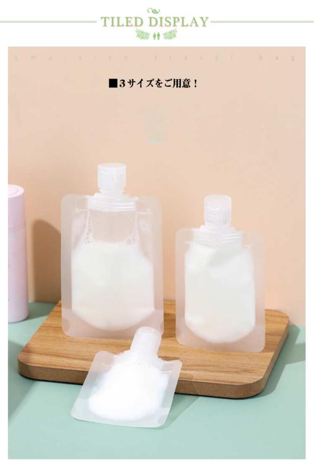 | 小さくて実用的なので、省スペースで 持ち運びがカンタンな、様々な液体の 保存に適したトラベルボトルです。 ■中身が見えて使いやすい! ■液漏れしない構造! ■漏斗付きで注入もカンタン! ■3サイズをご用意! ■たっぷり使える50枚入り! | |