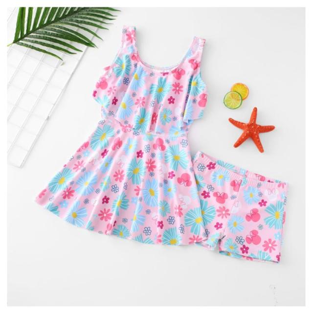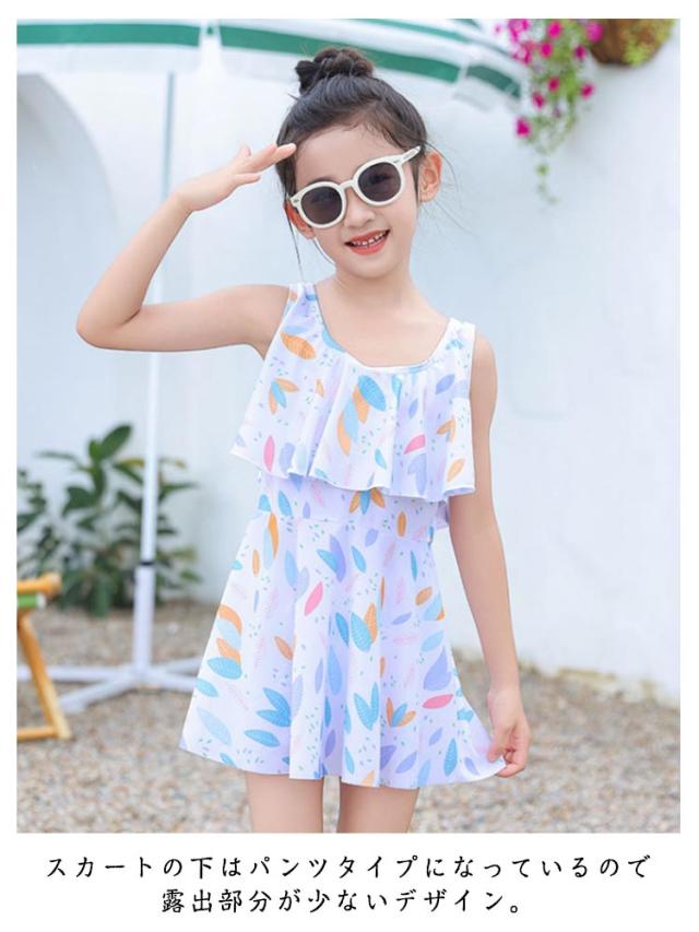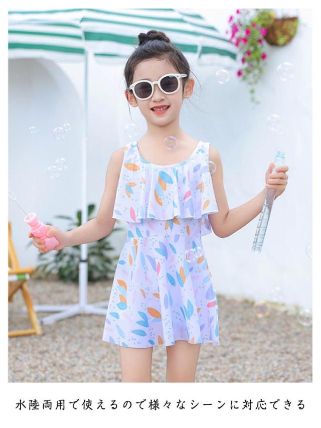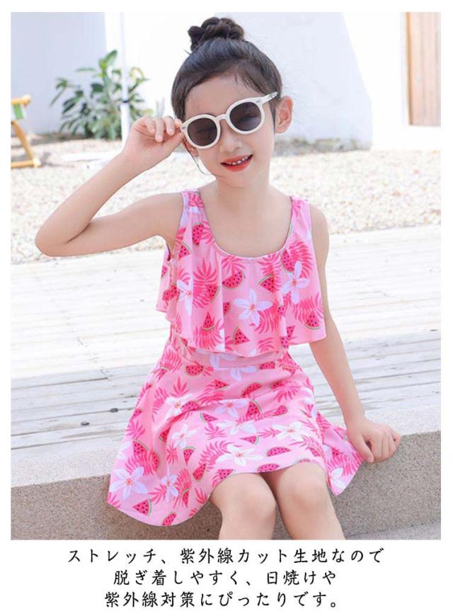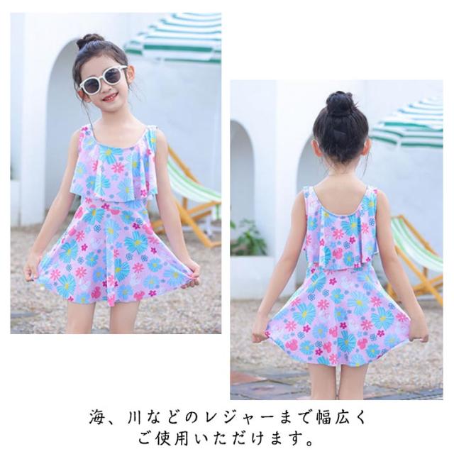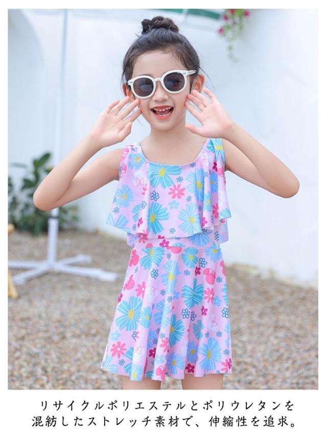 かわいい 子供 総柄 花柄 女児 女の子 フレア ノースリーブ セパレート 子供 フリル スカート 2点セット 水着 ジュニア ワンピース 女子 100cm 110cm 120cm 130cm 140cm 150cm 160cm 小学校 中学生 UVカット キッズ水着