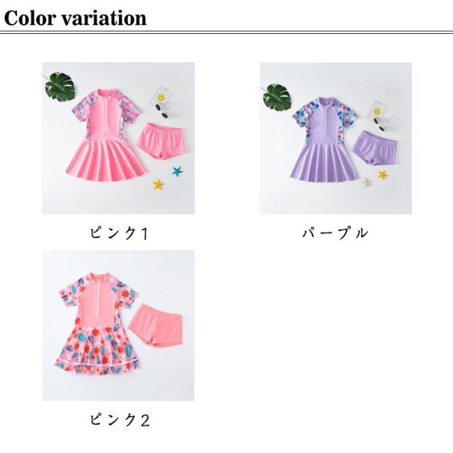 キッズ ジュニア 花柄 セパレート 女の子 子供 女子 中学生 ワンピース 水着 スカート スイムウェア UVカット かわいい 海 女児 小学校 2点セット 半袖 子供水着 フレア スイミング 水遊び プール 水泳 総柄 露出控えめ 100cm 110cm 120cm 130cm 140cm 150cm