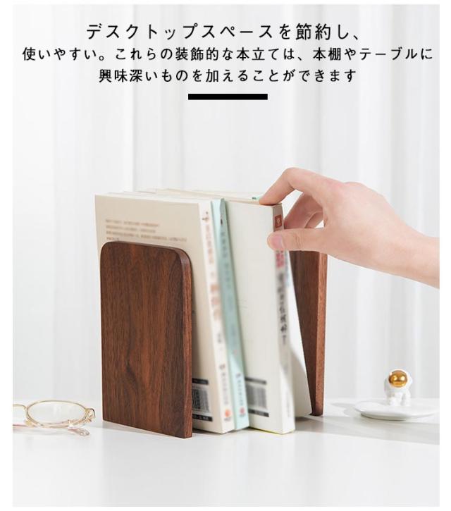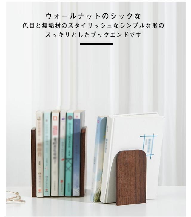 卓上 ブックスタンド おしゃれ ブックエンド 本立て ウッド 2個セット 2個セット 無垢材 木製 四角 モダン ナチュラル ウォールナット 机上 天然木 北欧 仕切り L字 L字型 倒れない お洒落 本棚 収納 スタンド 本 教科書 絵本