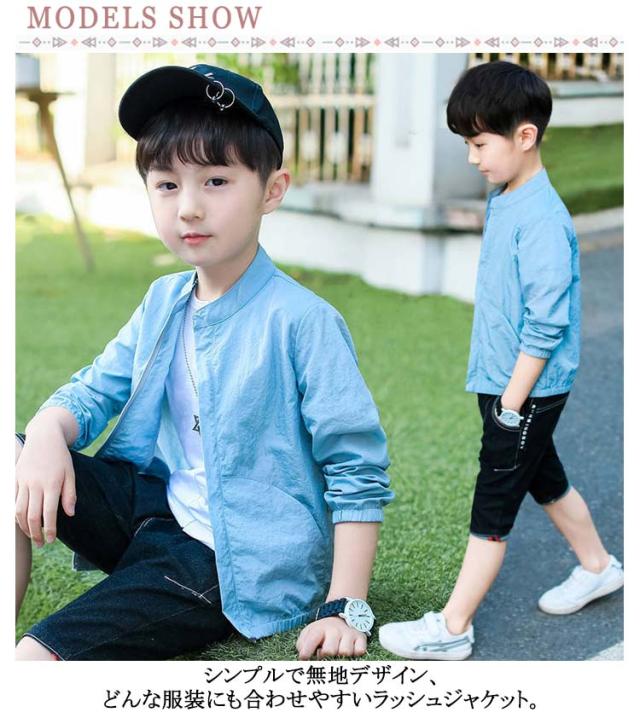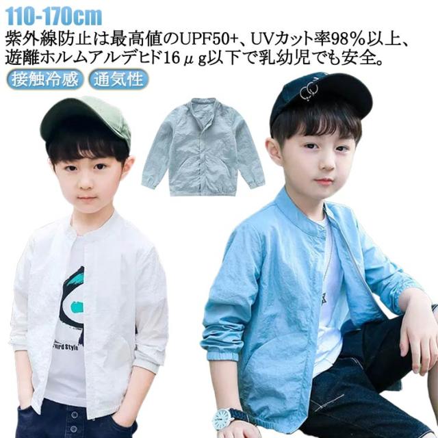 キッズ ウインドブレーカー UVカット 接触冷感 薄手 100 UVカット ジャンパー フードなし 無地 uvカット マウンテンパーカー ジャケット 子供服 アウター 通気性 柔らかい 紫外線対策 トップス 送料無料 110 男の子 120 130 140 150 160