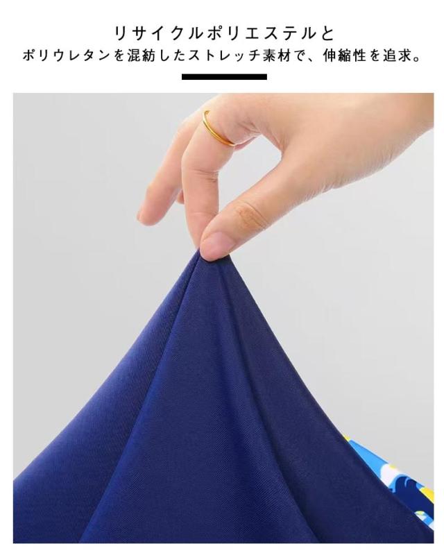 | キャップ・トップス・パンツの3点セット!【80cm−160cm】 上下セパレートでお洋服みたいに着こなせるからお着替えも、おトイレも自分で出来ちゃう!?ママもラクラクなデザイン 半袖トップス&ショートパンツ&キャップのセットタイプで水陸両用で使えるので様々なシーンに対応できる ストレッチ性に優れ、フィット感のよい、セパレートタイプの女児向けウォーターウエア。 リサイクルポリエステルとポリウレタンを混紡したストレッチ素材で、伸縮性を追求。 ストレッチ、紫外線カット生地なので脱ぎ着しやすく、日焼けや紫外線対策にぴったりです。 海、川などのレジャーまで幅広くご使用いただけます。 | |