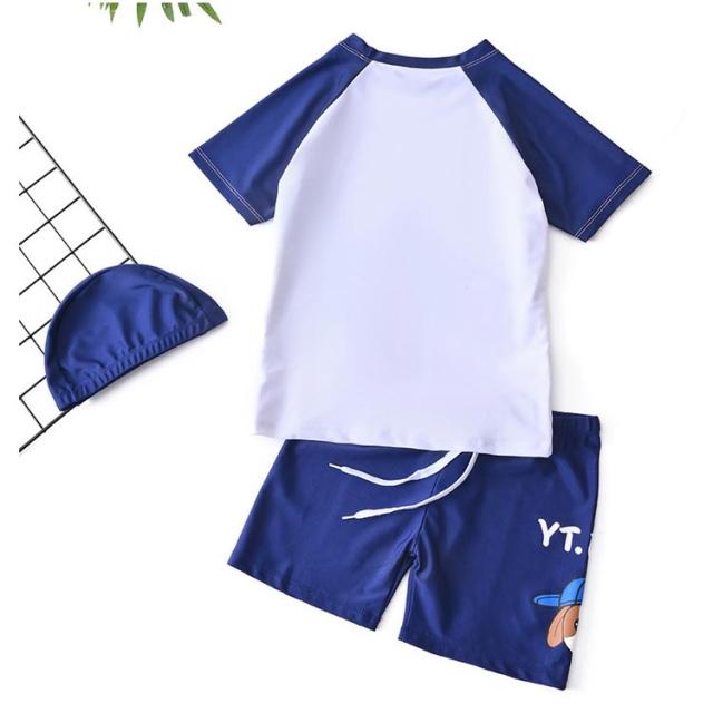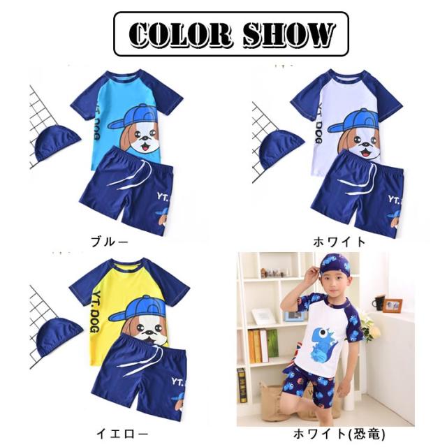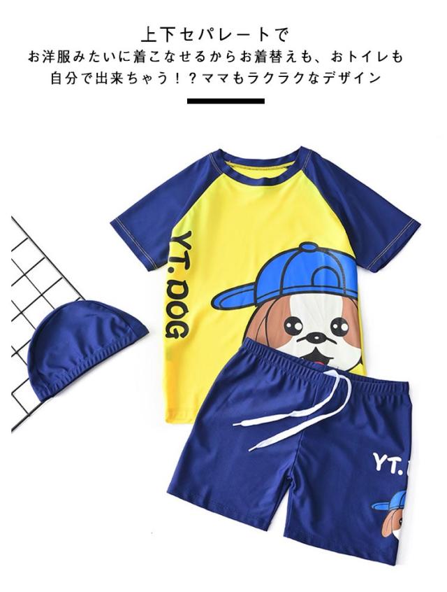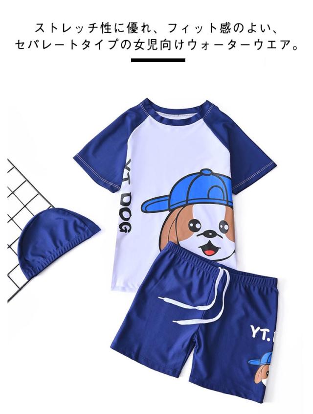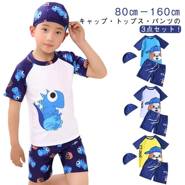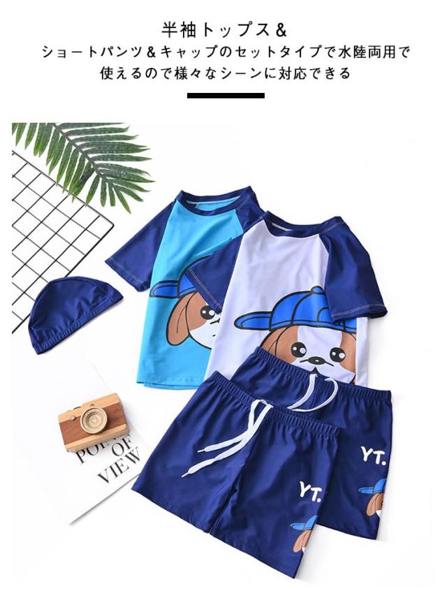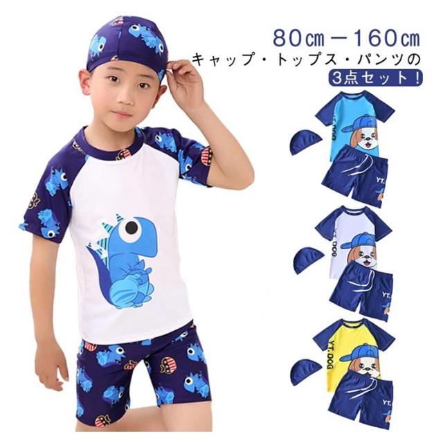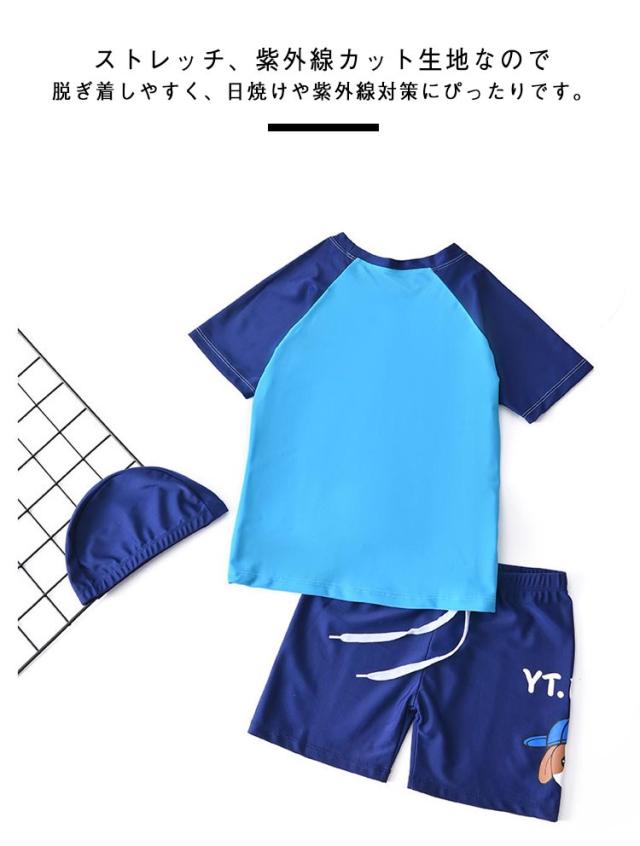半袖 帽子付き 上下セット ショートパンツ ラッシュガード 男の子 キッズ 水泳 3点セット ベビー 子供 スクール水着 水着 ハーフパンツ 紫外線対策 UVカット 90cm 小学生 半袖トップス セパレート スイミング 水着 夏 海 プール 80cm パンツ 100cm 110cm 120cm 130cm