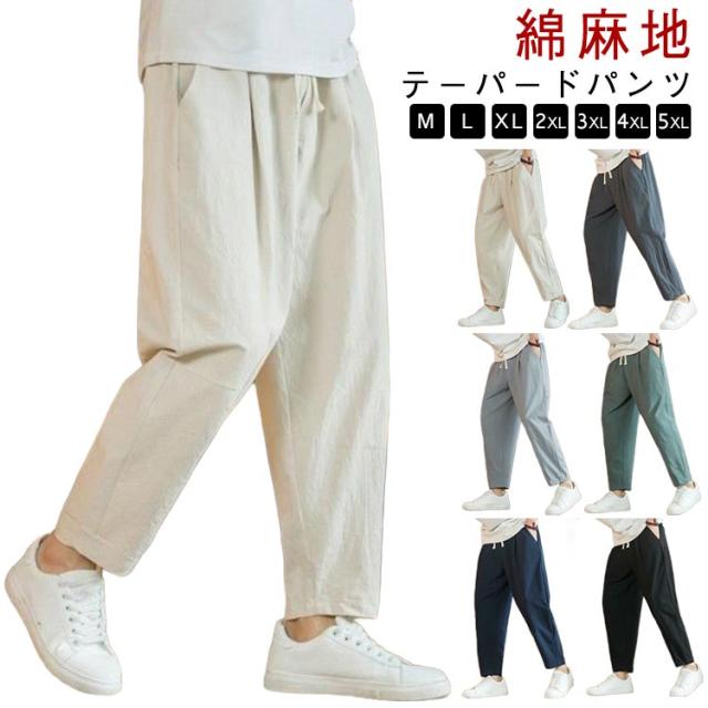 | 足首に向かってゆるやかに細くなるのが特徴的なテーパードパンツ。【綿麻地】【M-5XL】 すっきりと清潔感のある印象に仕上がります。 通気性、速乾性に優れたリネンコットンのパンツは、ジメジメとした梅雨や汗ばむ夏場に最適な素材。 ウエストはゴム仕様で着脱しやすく調整可能。 ドライな肌触りが春夏らしい雰囲気です。 カラーに加え、春夏にぴったりなマスタードを加えた6色展開です。 | |