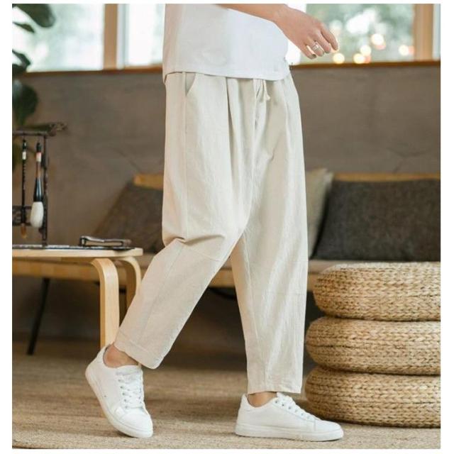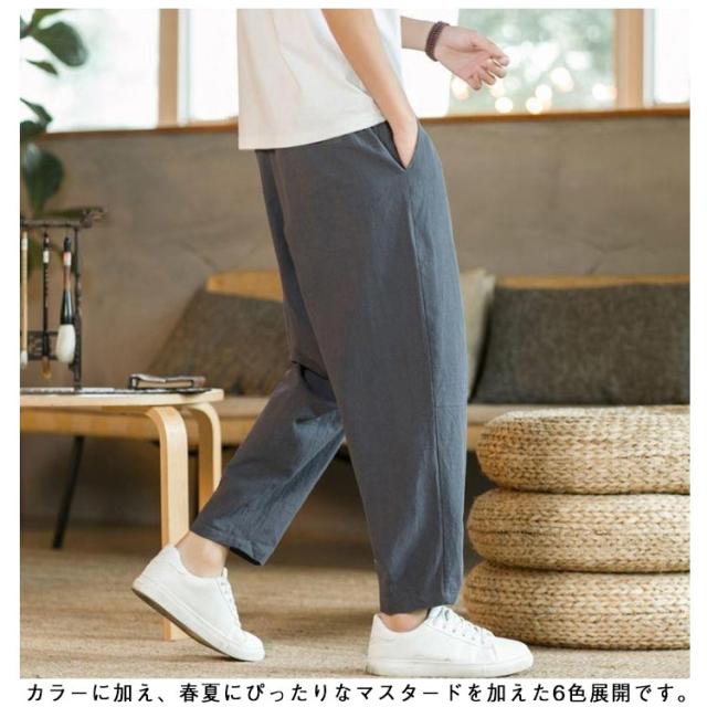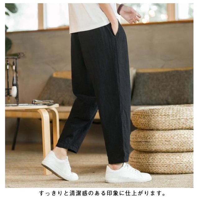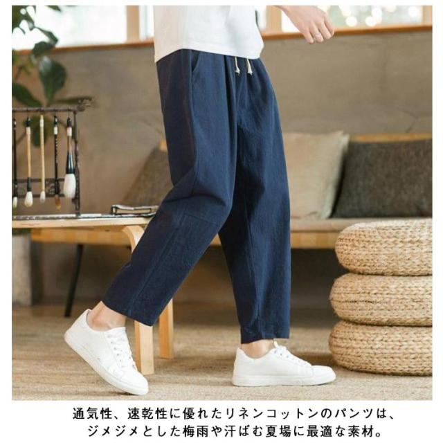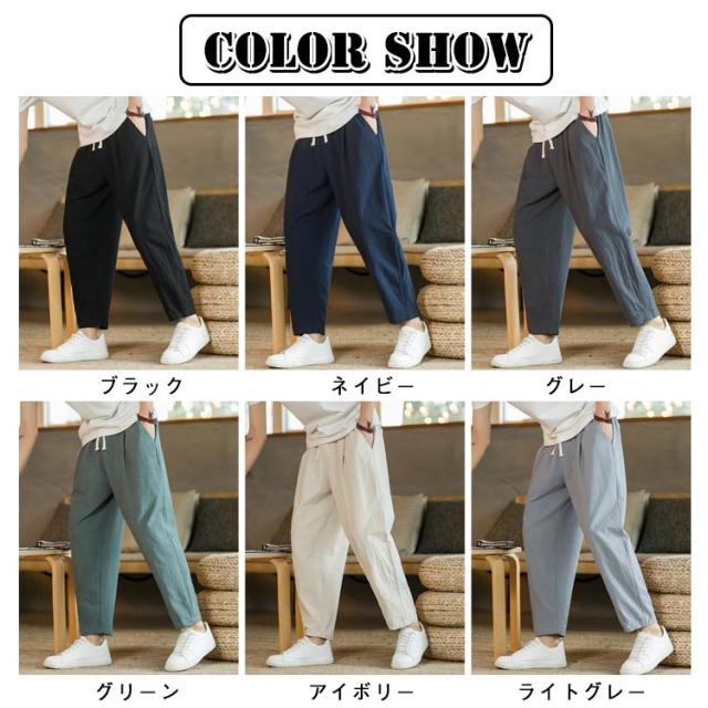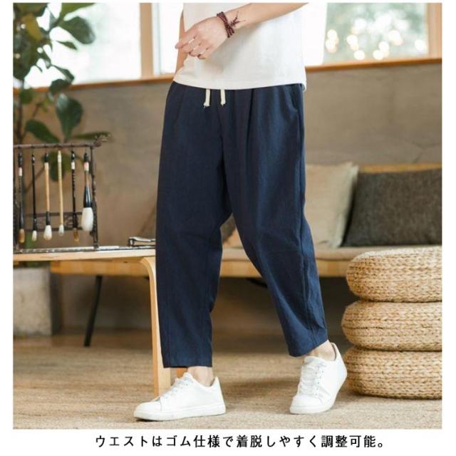 テーパードパンツ ワイドパンツ リネンパンツ イージーパンツ アンクル丈 秋 綿麻 チノパンツ 快適 シェフパンツ 清涼感 通気性 メンズ 薄手 綿麻パンツ テーパードパンツ カジュアルパンツ 春 夏 リネン ズボン ゆったり ゴムウエスト 無地 大きいサイズ 父の日ギフト
