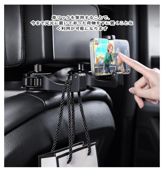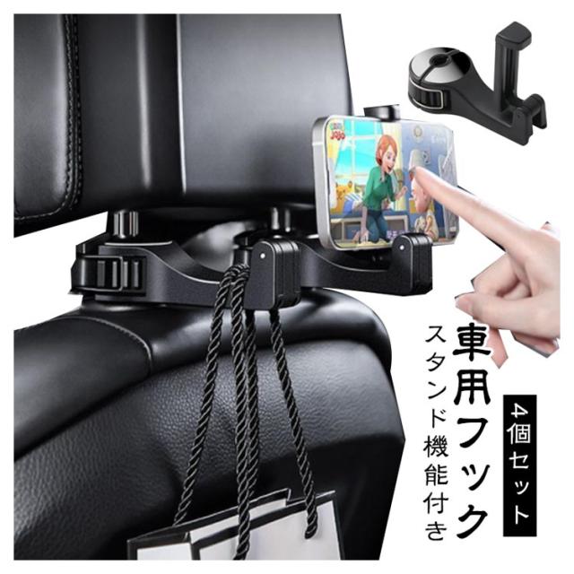 | 【4個セット】【車用フック】 【スタンド機能付き】 散らかった車内の荷物をスッキリ収納 !車用フック♪ スタンド機能でスマホを装着!安定して映画鑑賞が楽しめる。 使わない時は横向きにして収納 が可能なので邪魔にならない便利設計! 車フックを使用することで、今まで足元に置いてあった荷物を下に置くことなく利用が可能になります♪ | |