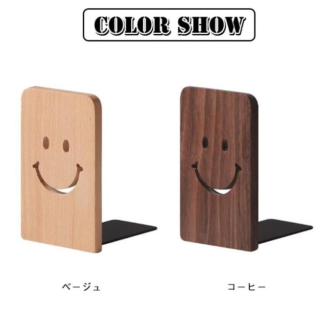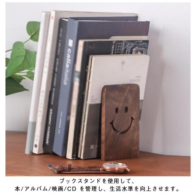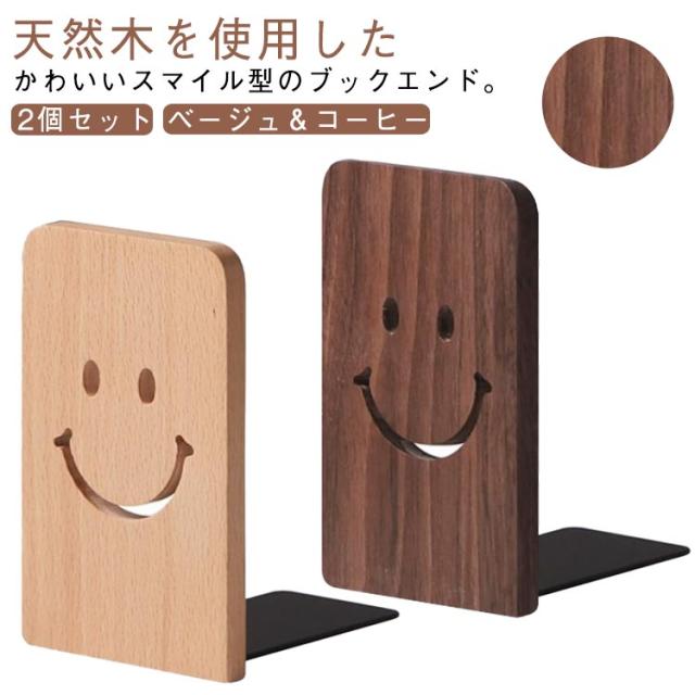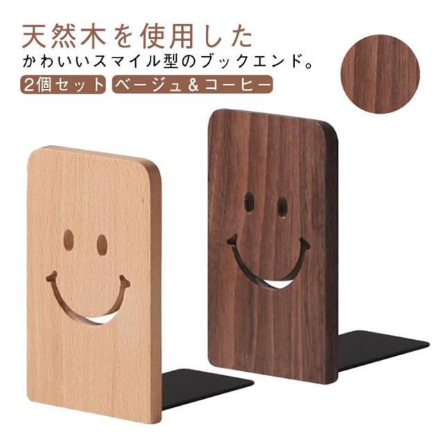 本立て 木製 かわいい ブックスタンド L字型 ウッド 笑顔 2個セット 机上 無垢材 スマイル お洒落 おしゃれ 卓上 ナチュラル L字 2個セット スタンド 倒れない 四角 北欧 仕切り ウォールナット ブックエンド 本 教科書 絵本