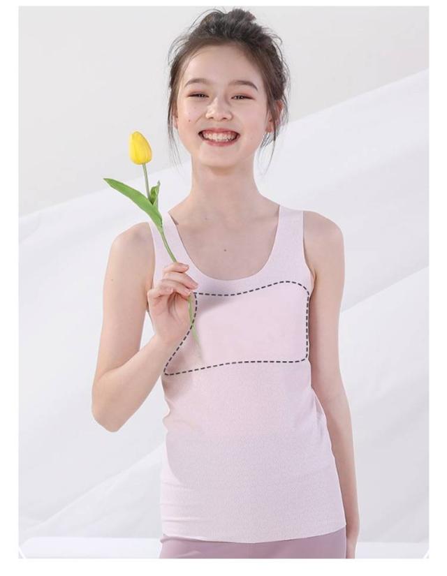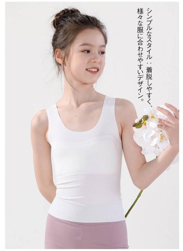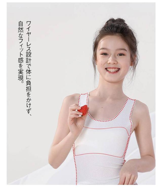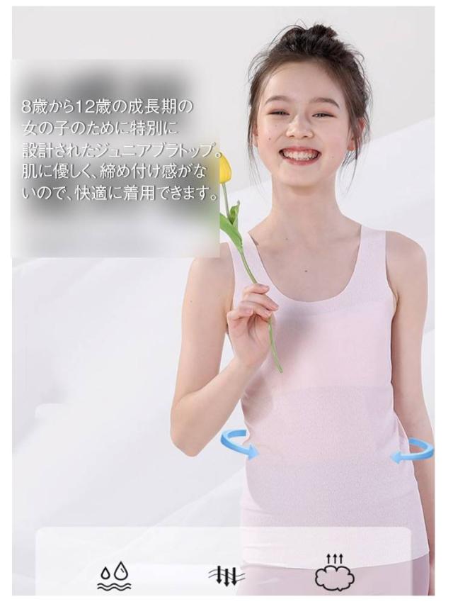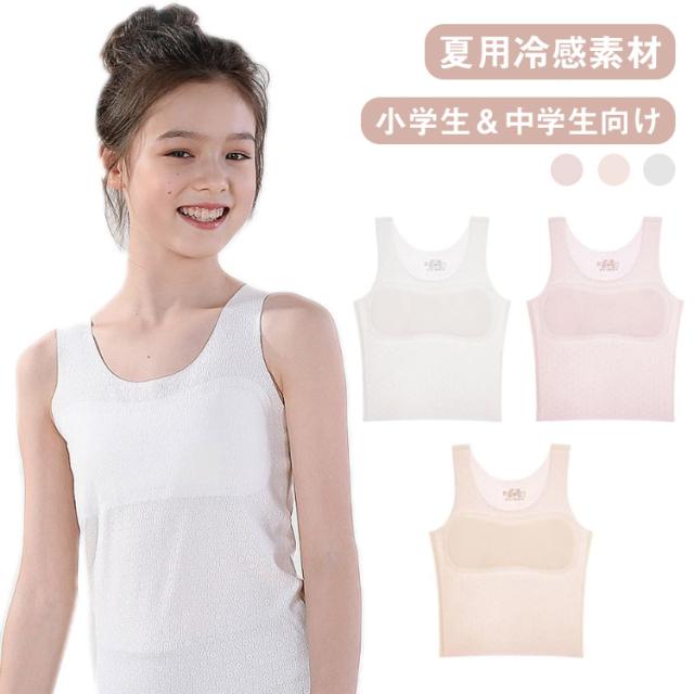 キッズ アイスシルク ジュニアブラ シームレス 中学生 接触冷感 夏用 タンクトップ 小学生 8-12歳 女の子用 子供用 ノンワイヤー ブラトップ シームレス インナー トップス