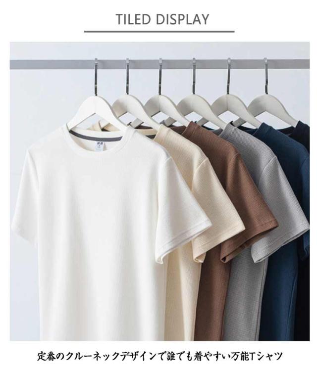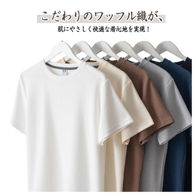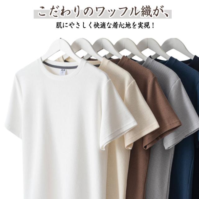 夏 ワッフルTシャツ カジュアルTシャツ トップス クルーネック 半袖Tシャツ 体型カバー メンズ 薄手 大きいサイズ シンプル 無地 おしゃれ メンズファッション 通気性抜群 夏服 大人 サマートップス リラックス
