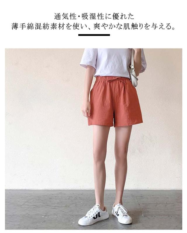 綿 夏 ハーフパンツ ガウチョパンツ ウエストゴム 夏服 レディース 薄手 ショートパンツ キュロット おしゃれ 涼しい 涼しい ボトムス パンツ 大きいサイズ ズボン ゆったり aライン ゴム ハイウエスト 無地 ワイド シンプル パンツ 体型カバー