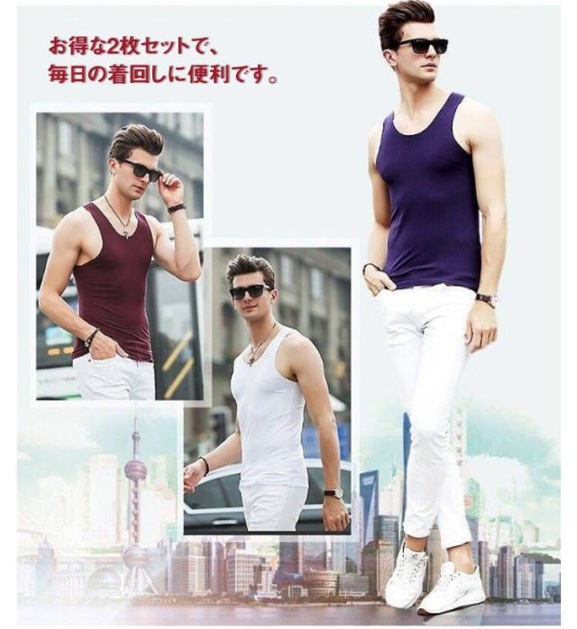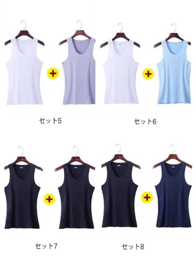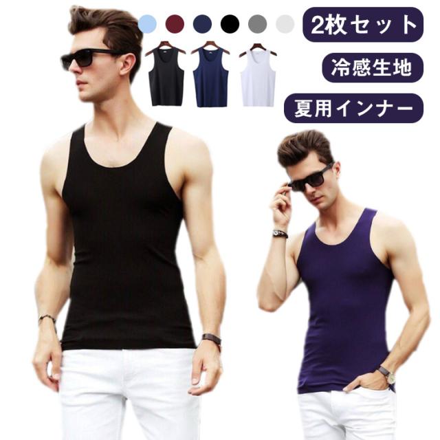 ひんやり 冷感タンクトップ 2枚組 スポーツ Uネック アイスシルク タンクトップ シームレス 夏用 下着 インナーシャツ 接触冷感 アンダーウエア ノースリーブ Tシャツ 肌着 2枚組 細身 プレゼント父の日