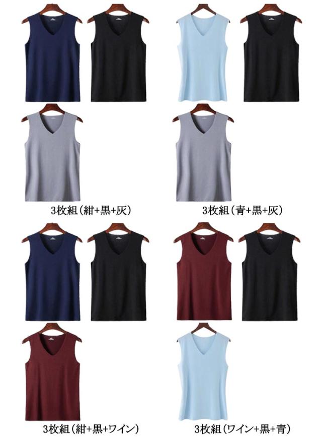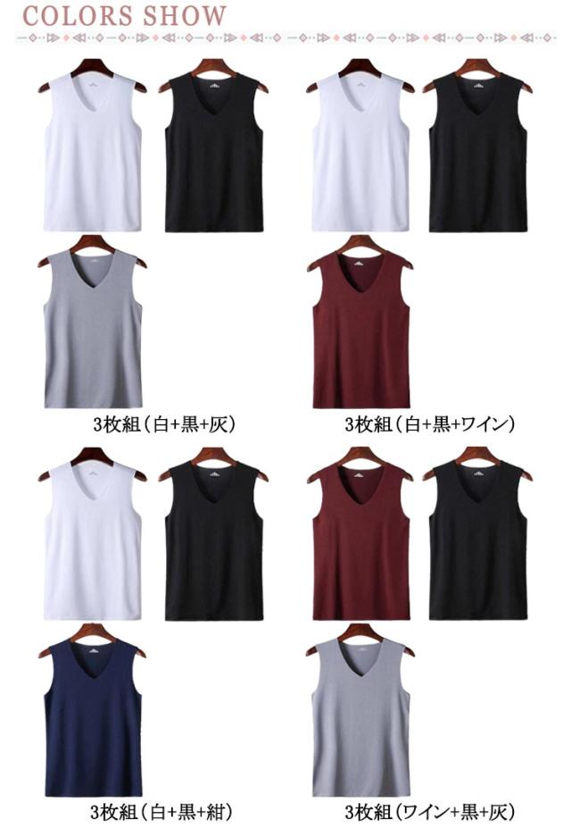 3枚セット 通気性 接触冷感 シンプル ノースリーブ ノースリーブシャツ 肌着 タンクトップ メンズ 3枚セット 下着 Vネック インナー シームレス トップス 夏 クール 袖なし インナーシャツ 紳士 男性 透けない