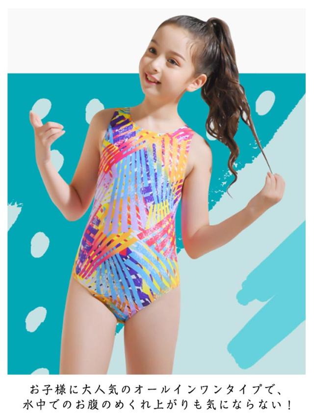 オールインワン 練習用 スクール水着 女子 競泳用 水着 オープンバック スイムウェア 競泳水着 ジュニア 子供 キッズ 女の子 競泳練習水着 トレーニング スイミング フィットネス水着 水泳 ジム プール 学校用 子供水着 虹色