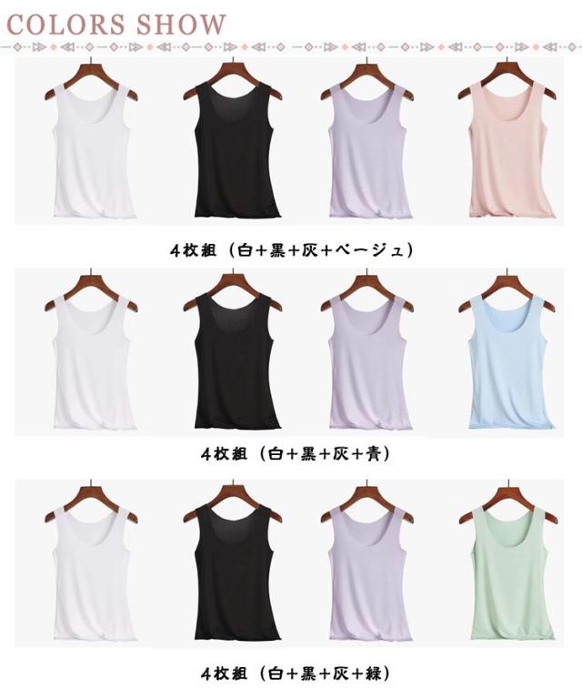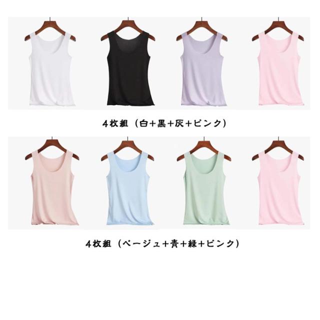 タンクトップ 4枚セット 冷感 レディース レイヤード シームレス 見えない 接触冷感 吸水速乾 ひんやり 肌着 薄手 下着 部屋着 インナー Uネック 4枚セット キャミソール ブラ紐 さらさら素材 爽やか速乾