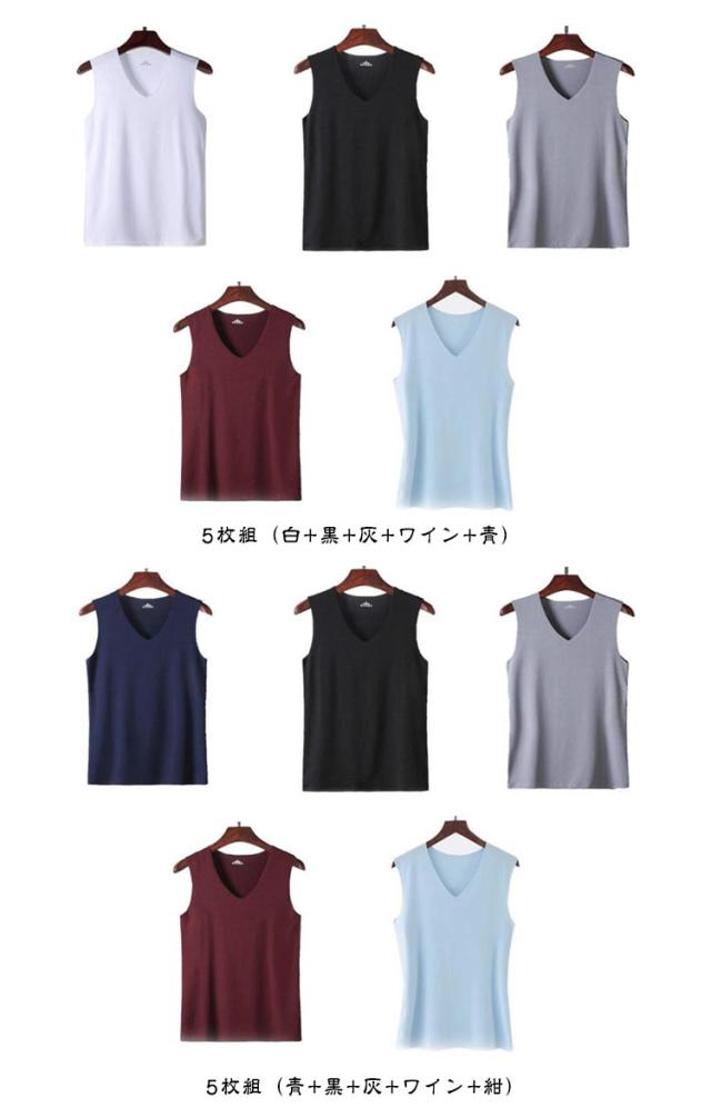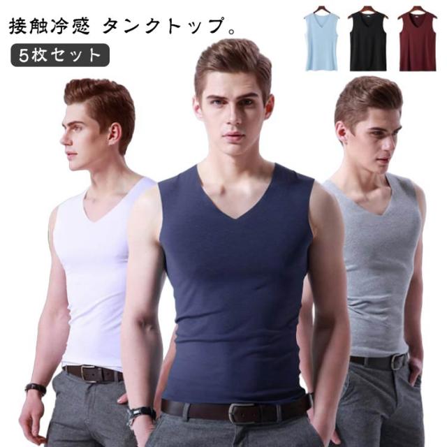 肌着 下着 接触冷感 Vネック 5枚セット シームレス メンズ シンプル 吸汗速乾 5枚セット インナーシャツ ノースリーブ タンクトップ 通気性 トップス 夏 クール 袖なし ノースリーブシャツ 紳士 男性 透けない