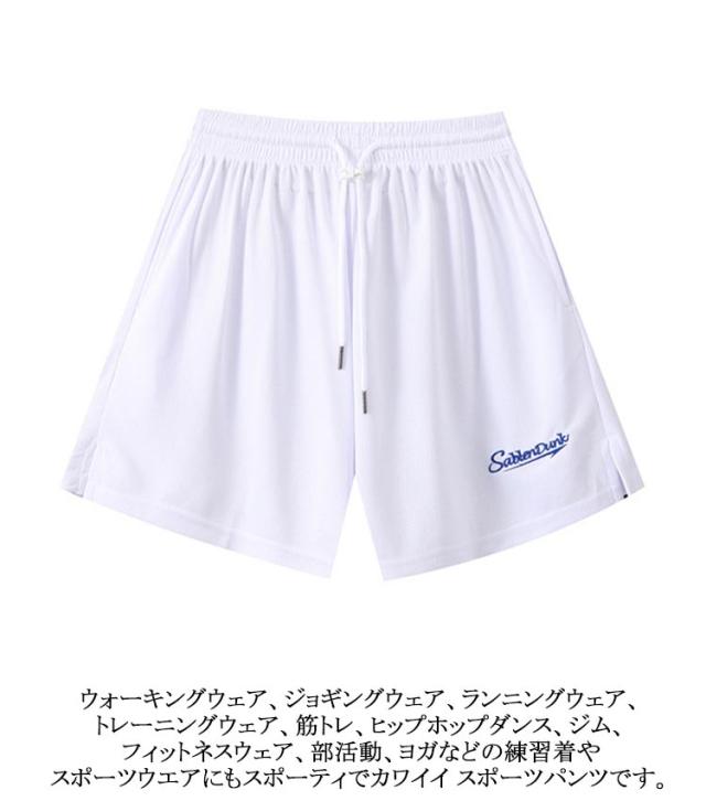 | サラサラドライで快適に過ごせるショートパンツ。 スポーツはもちろん、ルームウェアやパジャマにもOKなハーパン。 ウエストはゴム仕上げなので着脱も便利で、ウエストの調整がしやすいのがポイントです。 ウォーキングウェア、ジョギングウェア、ランニングウェア、トレーニングウェア、筋トレ、ヒップホップダンス、ジム、フィットネスウェア、部活動、ヨガなどの練習着やスポーツウエアにもスポーティでカワイイ スポーツパンツです。 | |