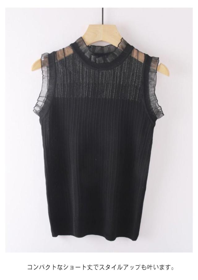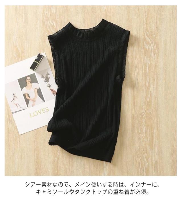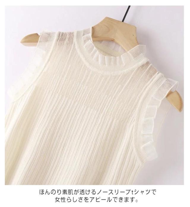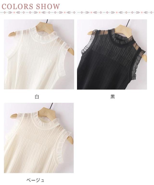 フリル カットソー レディース ノースリーブ ボトルネック インナー 春夏 薄手 重ね着 フリル レイヤード Tシャツ インナー タンクトップ シアー ハイネック 袖なし シアートップス カットソー 薄手 重ね着 無地 大きいサイズ 夏トップス 春夏 夏