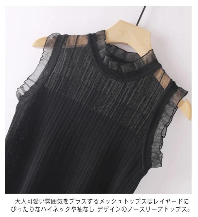 | 大人可愛い雰囲気をプラスするメッシュトップスはレイヤードにぴったりなハイネックや袖なし デザインのノースリーブトップス。 シアー素材なので、メイン使いする時は、インナーに、キャミソールやタンクトップの重ね着が必須。 ほんのり素肌が透けるノースリーブtシャツで女性らしさをアピールできます。 コンパクトなショート丈でスタイルアップも叶います。 身幅は、大きすぎない(オーバーサイズ オーバーシルエット)けれど、ピタッとタイトすぎない絶妙なシルエット。 | |
