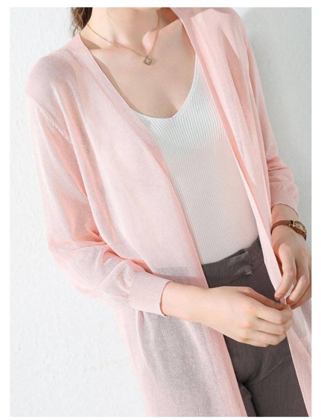 大きいサイズ アイスシルク サマーカーディガン カーディガン 冷房対策 レディースカーディガン 薄手ニット UVカット レディースカーディガン ロング丈カーディガン 体型カバー 日焼け防止 女性 きれいめ 通勤 旅行