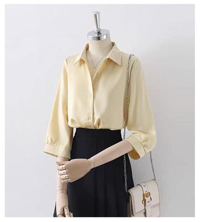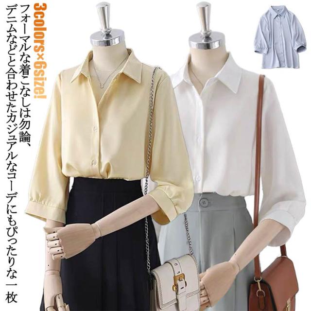 シャツ シワになりにくい 衿 トップス 白ブラウス レディース レギュラーカラー 7分袖 長袖 襟 ブラウス 白シャツ 大きいサイズ ゆったり フロントボタン ブラウス オフィスカジュアル ブラウス ホワイト イエロー ブルー
