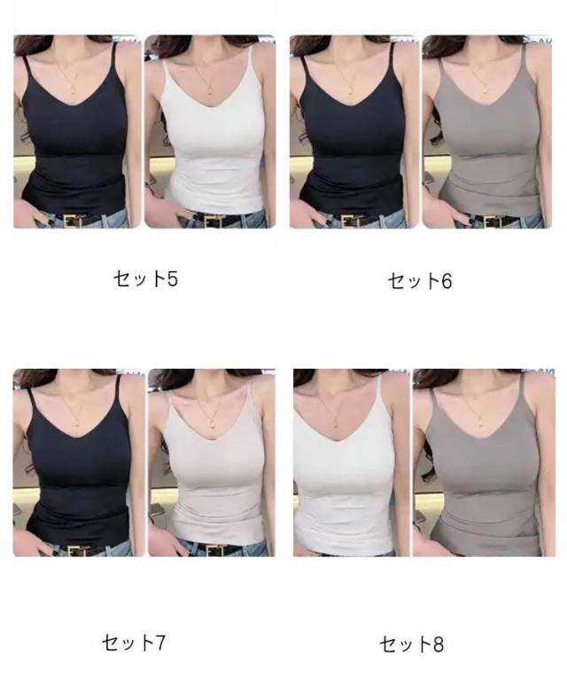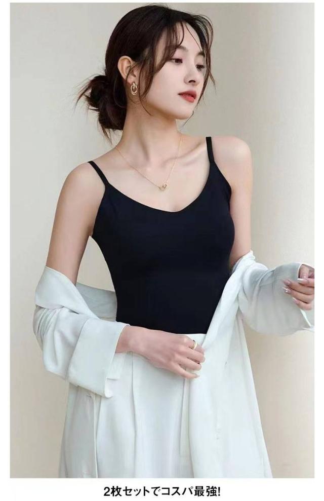 | ひんやり冷感素材で夏にぴったり 滑らかで伸縮性のあるアイスシルク生地を使用。蒸し暑い日もサラッと快適な着心地です。 カップ付きで1枚でも安心 ブラ不要のカップ付き仕様。透け対策・ズレ防止もバッチリ!ルームウェアとしても大活躍。 バックデザインが魅せる美しさ 大胆の美背スタイル。カーディガンと合わせても、1枚でさらっと着てもおしゃれ感アップ。 2枚セットでコスパ最強! デイリーユースに嬉しい2枚セット。カラー違いで着回し自在、洗い替えにも便利です。 | |
